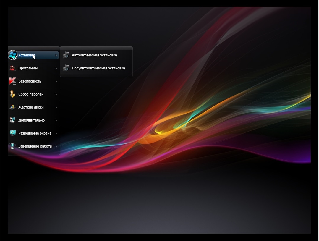 - Проходит полностью в автоматическом режиме, кроме выбора редакции и раздела для установки, активируется встроенная учетная запись Администратора.