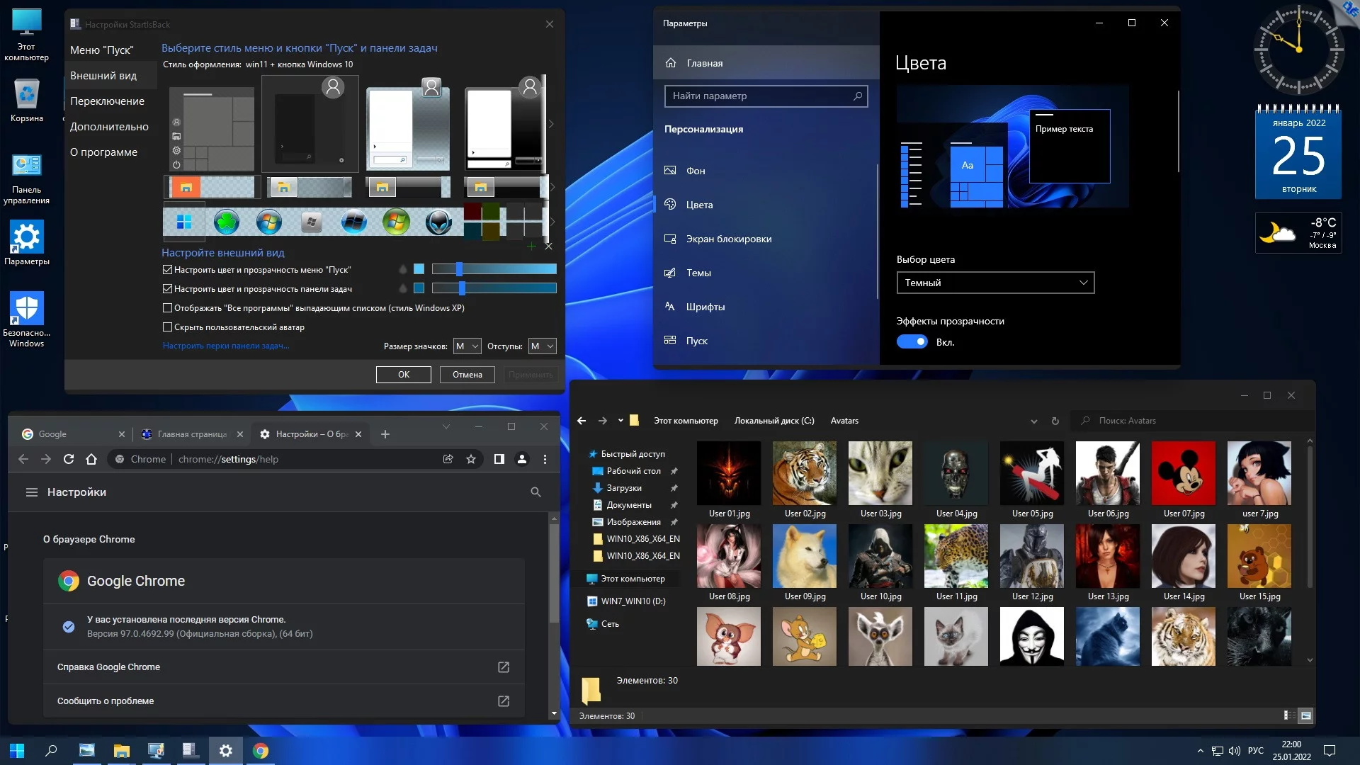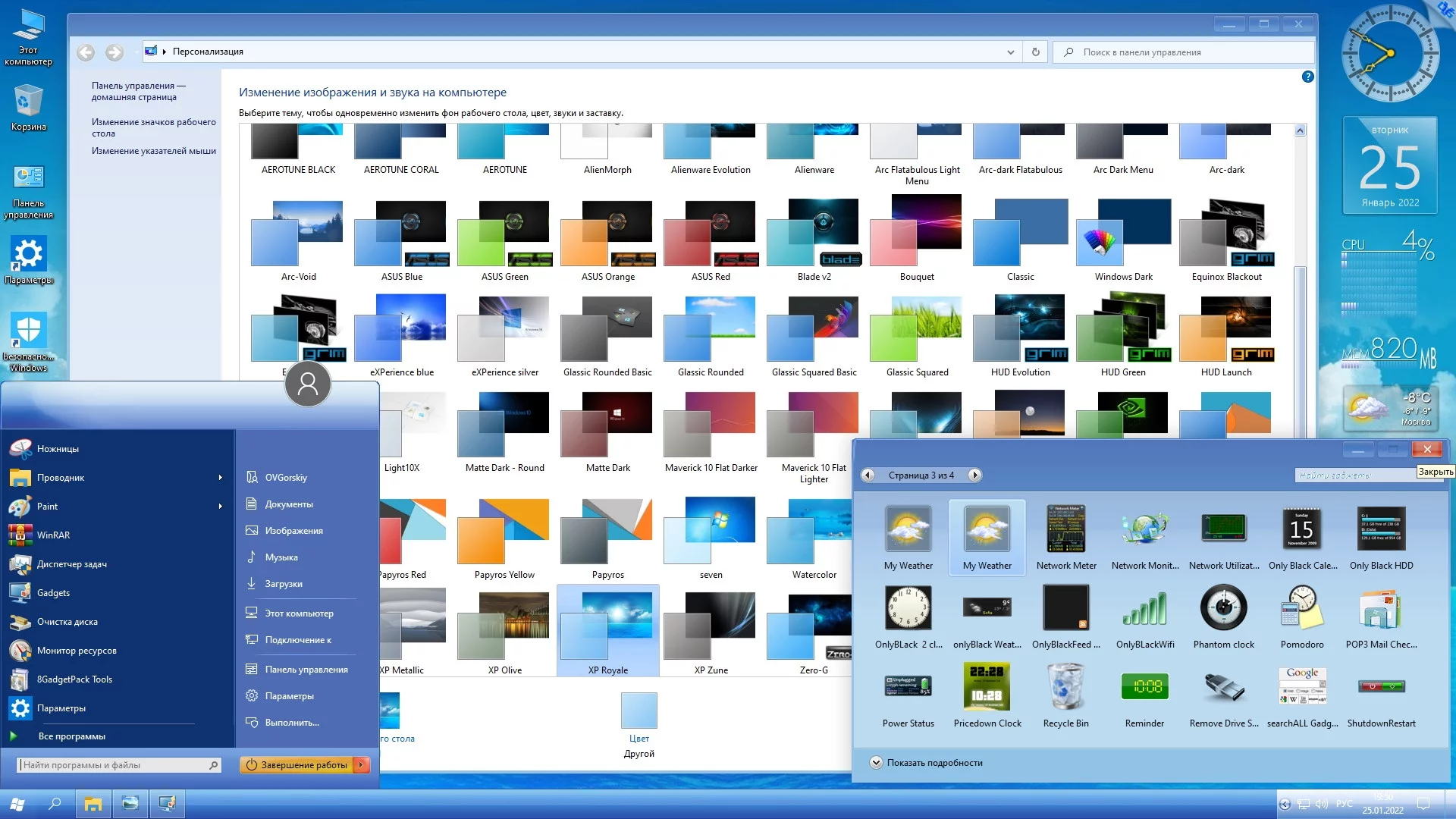 - **Установка дополнительных тем, гаджетов и аватарки пользователя