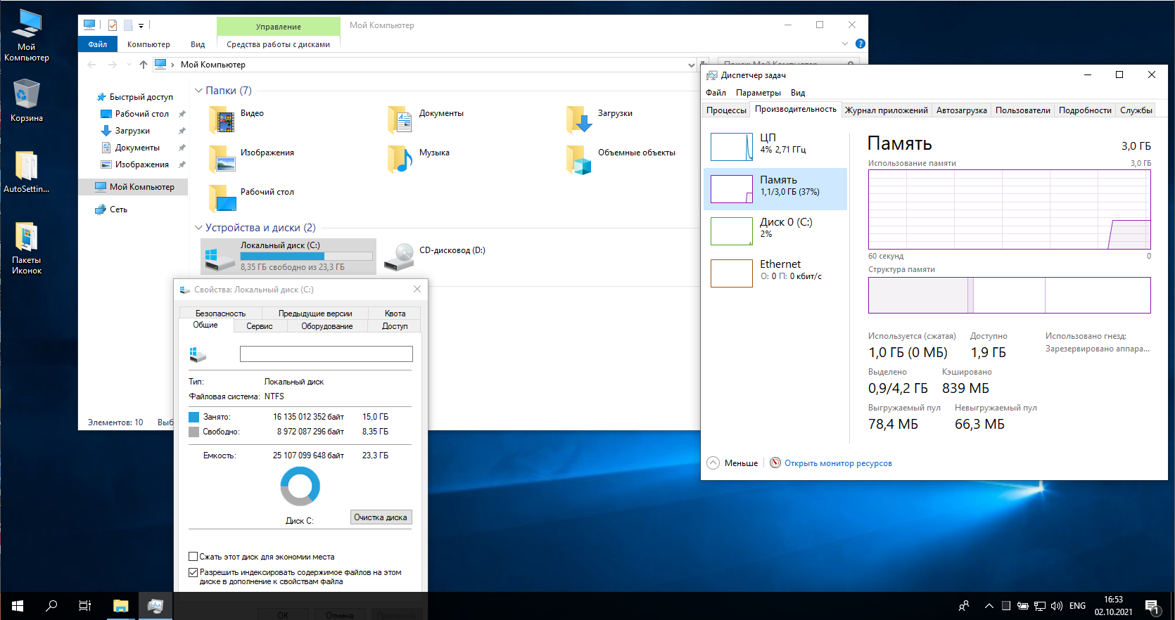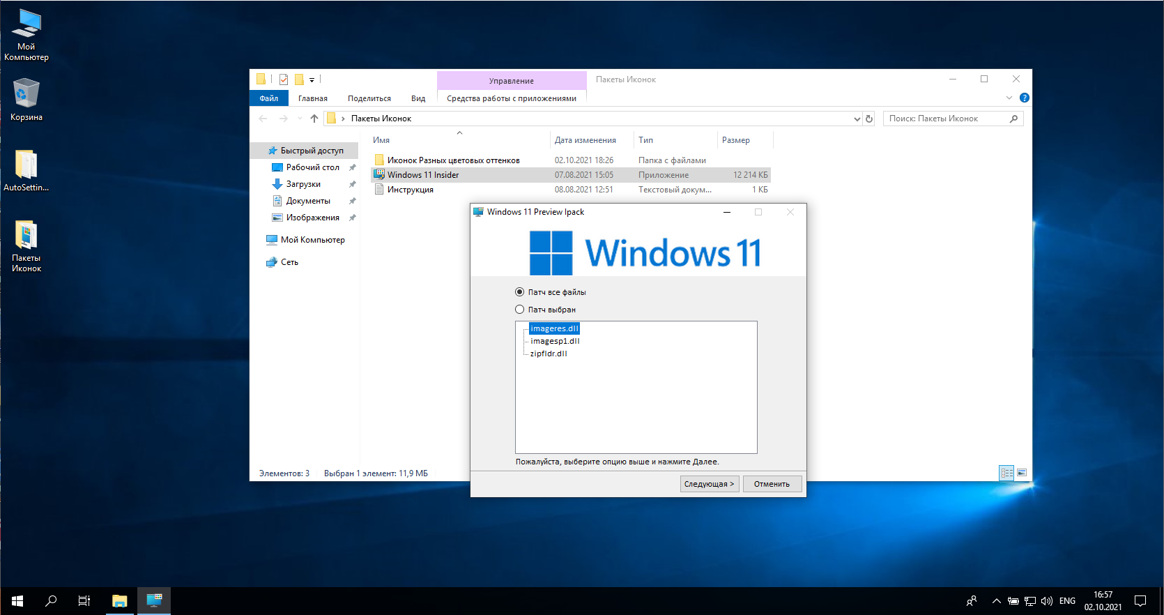 Сборка оснащена удачно интегрированной системой от Windows, добавленным меню "Моё компьютер" и обоями от Windows 11, а также персонализированным рабочим столом. При установке ваш комп не требует загрузочной флешки или CD диска.