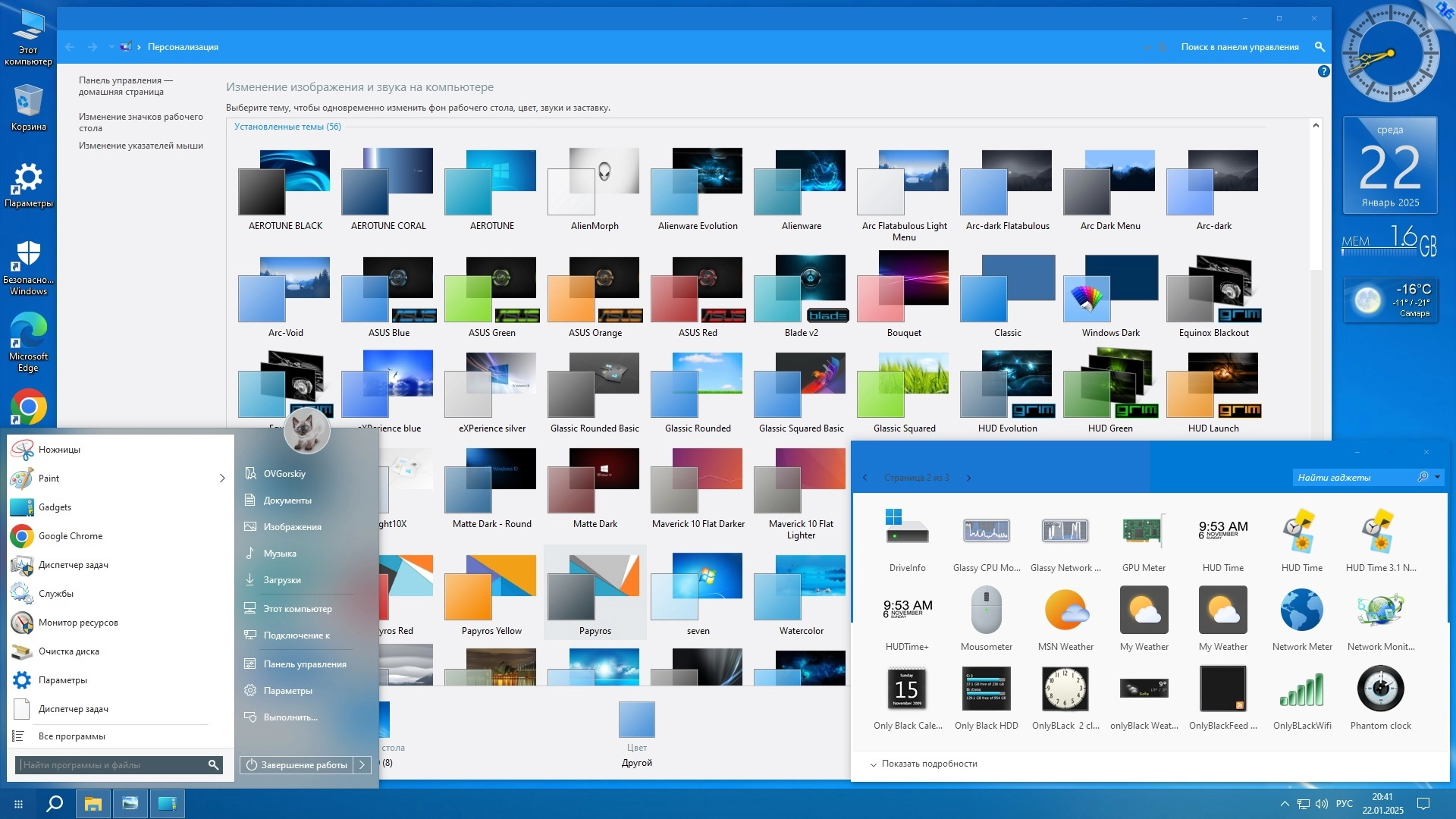 - Дополнительные темы оформления, фоновые изображения, гаджеты, аватарки пользователя