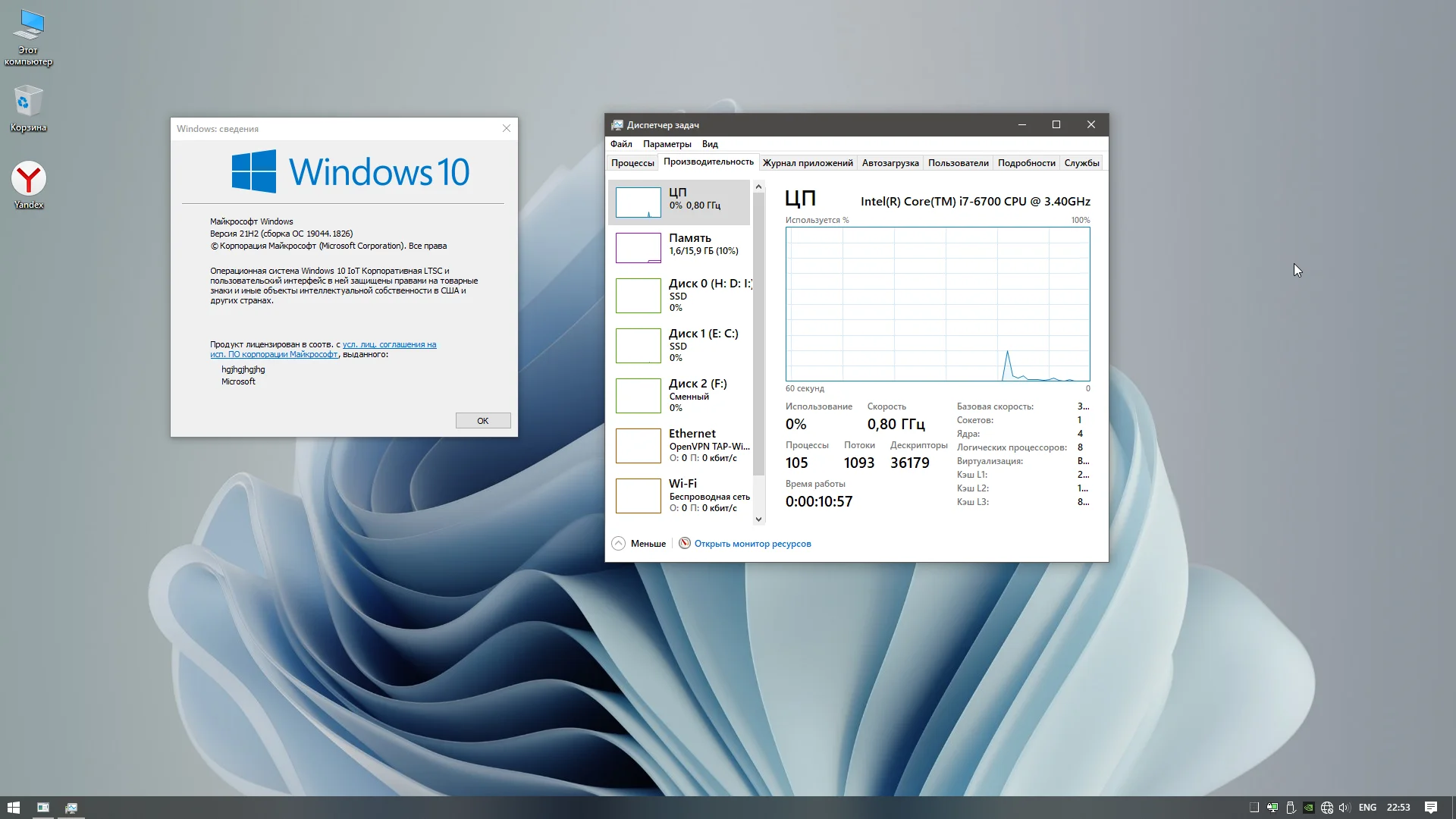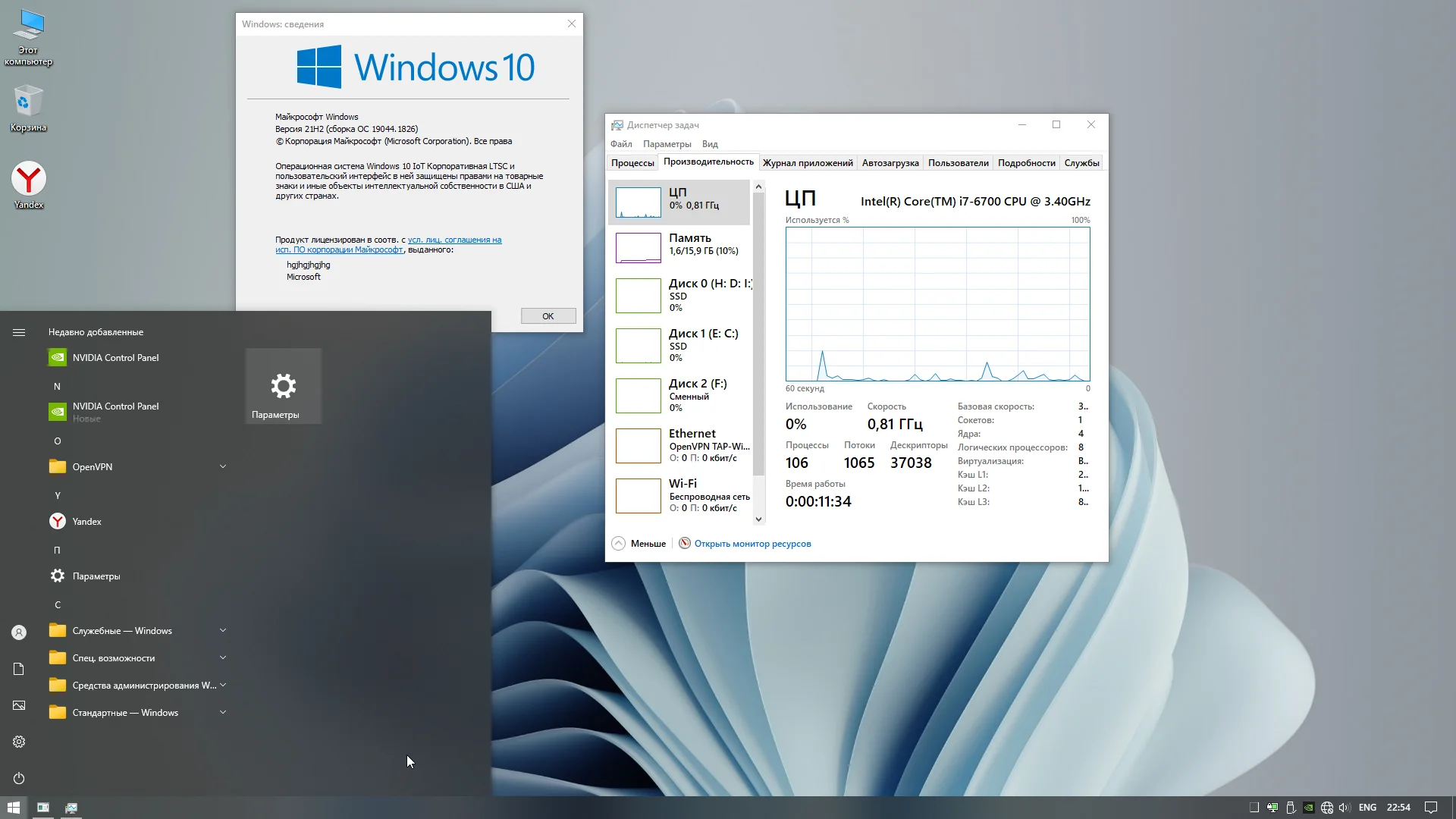 Скриншоты Windows 10 Enterprise LTSC x64 (IoT) 2021 + OpenVpn by WebUser v1 торрент: Скачать через торрент.