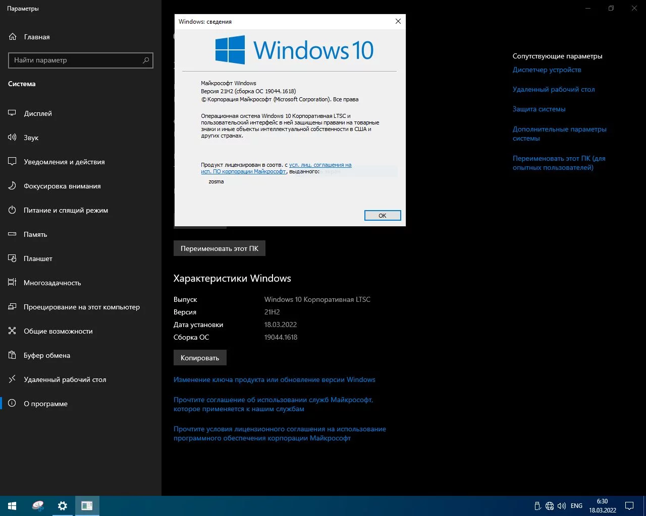 Windows 10 Enterprise LTSC x64 micro 21H2 build 19044.1618 by Zosma