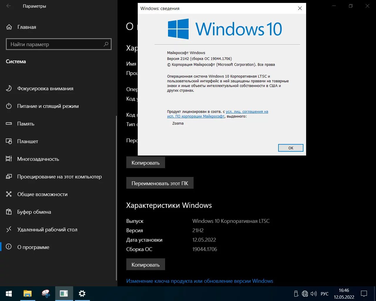 - Windows 10 Enterprise LTSC x64 micro 21H2 build 19044.1706 by Zosma торрент, изменения: