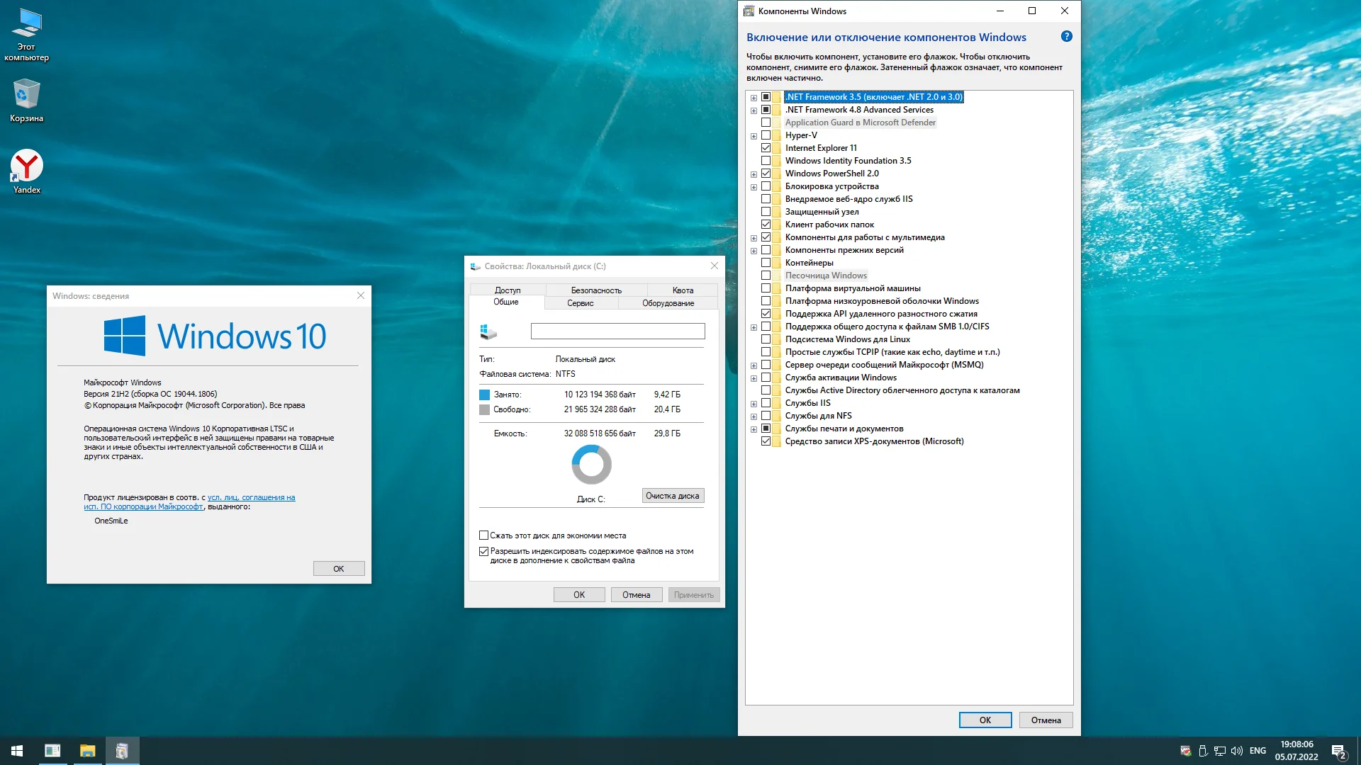 Windows 10 Enterprise LTSC x64 Rus by OneSmiLe [19044.1806] (FIX | 05.07.2022)