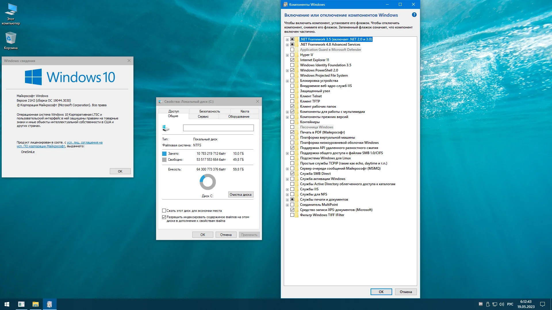 Windows 10 Enterprise LTSC x64 Rus by OneSmiLe [19044.3030] торрент, изменения: