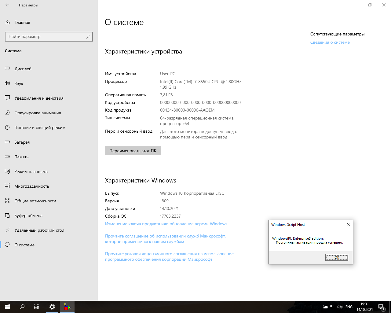 Версия системы: 17763.2237 [1809] x64 & x86, Windows 10 [LTSC] корпоративная LTSC 2019.