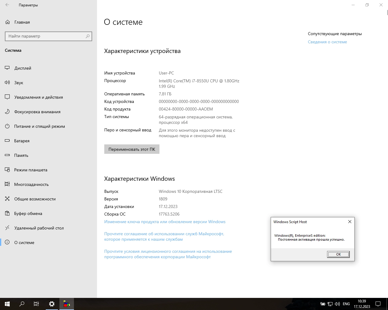 Система для системы Windows 10 Enterprise LTSC x64-x86 в версии 17763.5206 доступна на нескольких модификациях: без твиков и обновлений, с твиками без обновлений, и с твиками и обновлениями.
