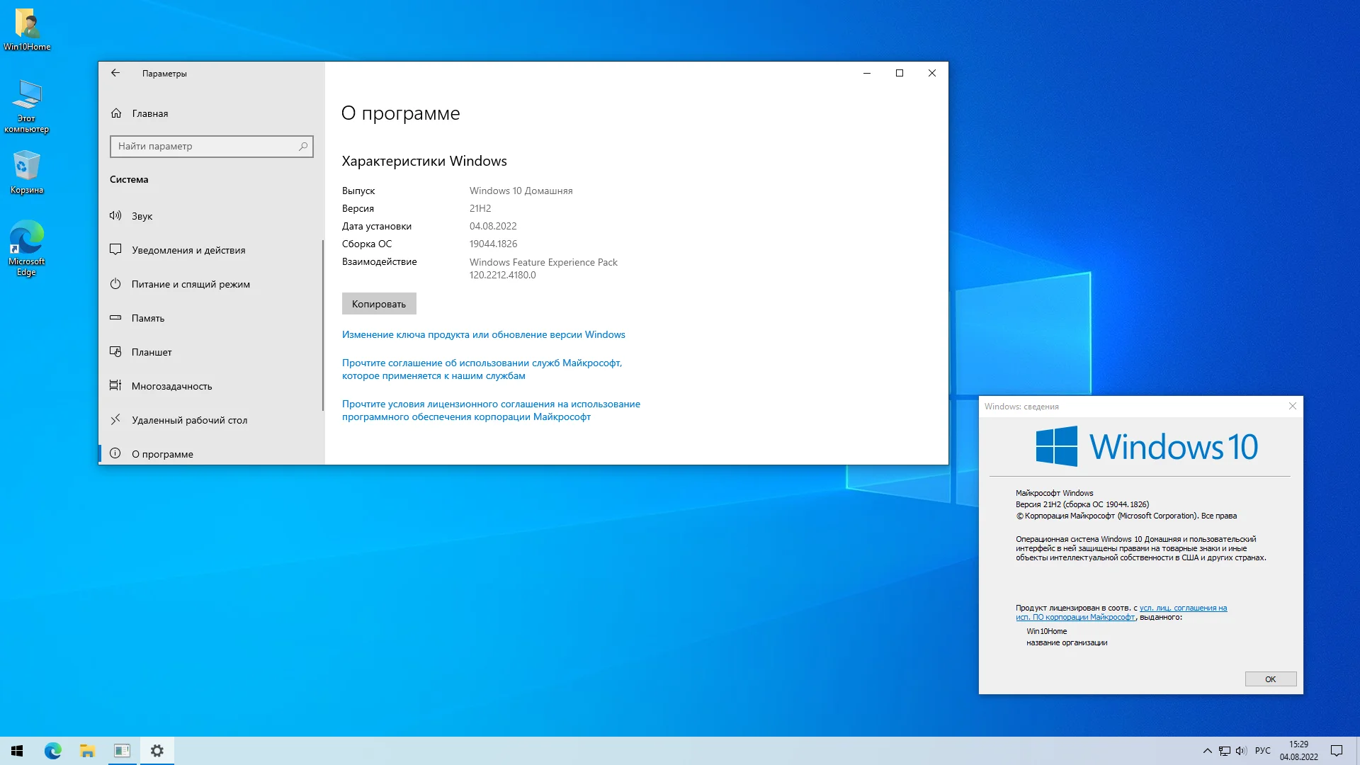 - Windows 10 Home 21H2 19044.1826 x64