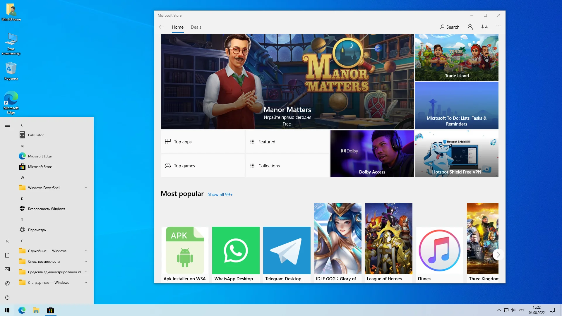 • Приложения Xbox, но включены основные приложения Microsoft Store и App Installer