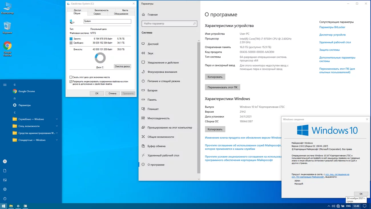 - Сборка основана на оригинальном образе Microsoft: ru-ru_windows_10_enterprise_LTSC_2021_x64_dvd_5044a1e7.iso