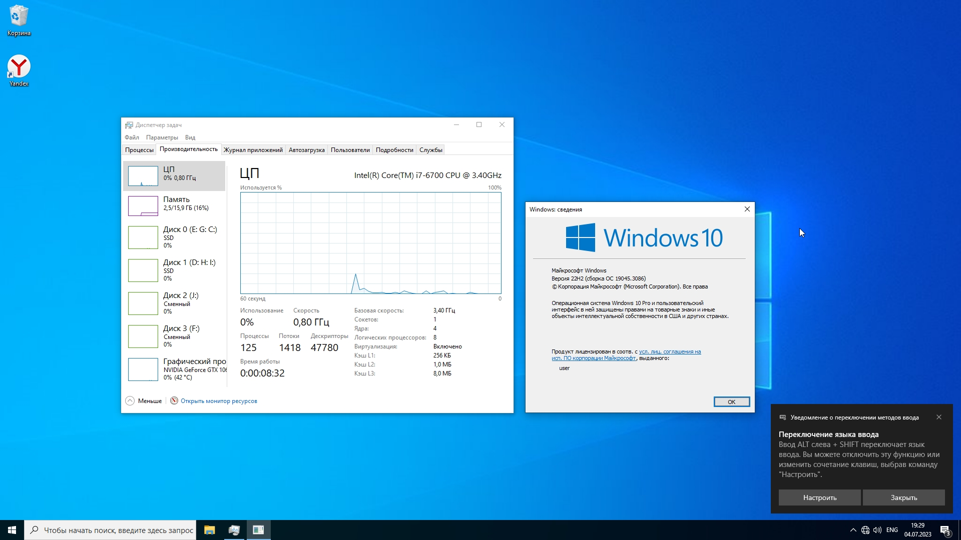 Версия Windows 10 LITE 22H2 19045.3086, подключившись к обновлению за 2022 год.
