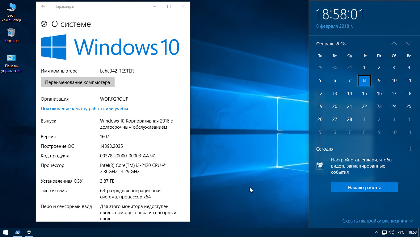В основе сборки оригинальные образы Microsoft ru_windows_10_enterprise_2016_ltsb_x86_dvd_9057886 Компьютер для системы: • Processor: 1 GHz or faster • RAM: 2 GB (86-bit) • Disk space: 10 GB free space • Graphics card: Microsoft