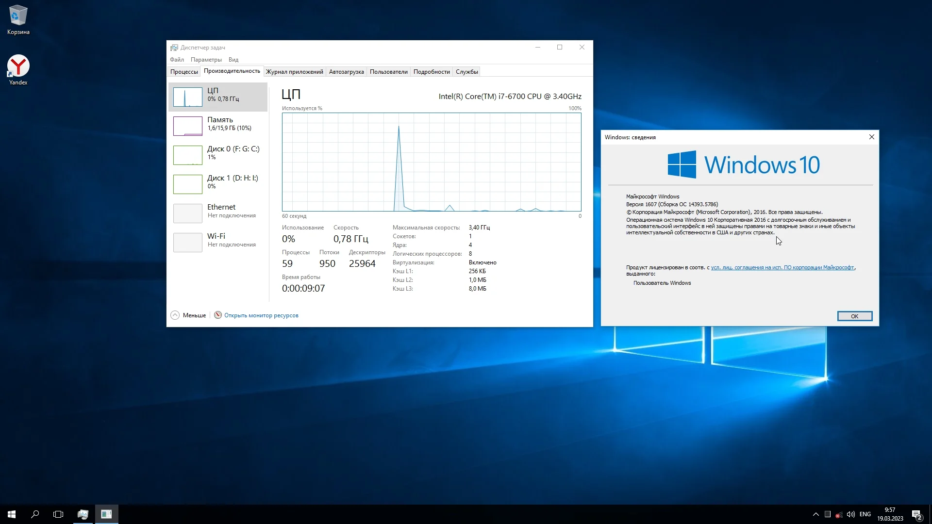 Обзор системы на экране Windows 10 LTSB 1607 Update 14393.5786 March 2023 торрент.