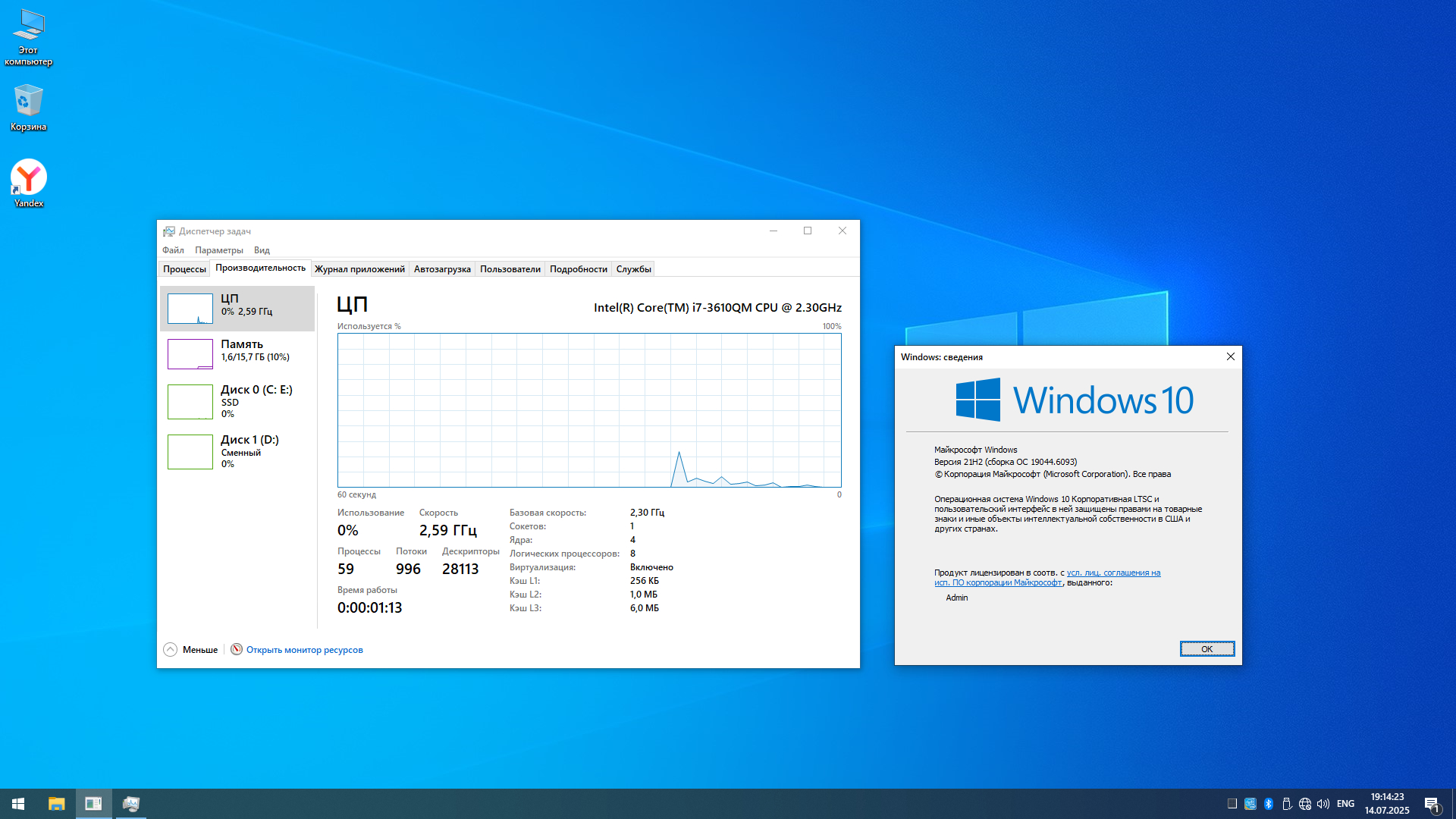 Windows 10 LTSC версии 21H2 Build 19044.6093, без поддержки Windows 10 после июля 2025 года, получает обновления и патчи безопасности до 2027 года. Особенности: • Заблокирована телеметрия • Оптимизировано контекстное меню • Включен стандартный просмотрщик фотографий • Отключено восстановление системы • Удален Spectre и Meltdown • Браузер Edge удалён • Установлен Yandex браузер • Процесс установки: