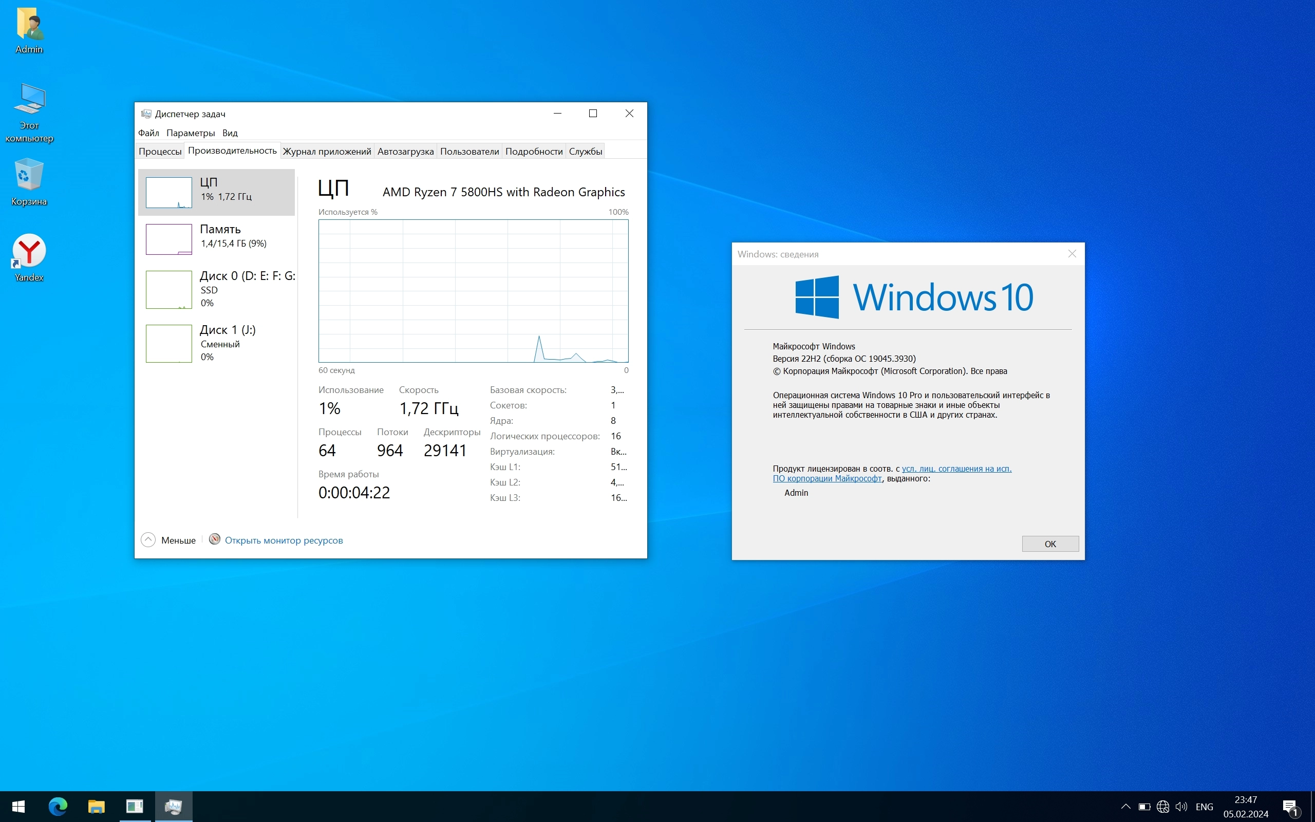 Windows 10 Optima Pro 22H2 19045.3930 x64 Полноценная сборка с обновлениями до января 2024 года, полностью очистившись от лишних служб и приложений. Системные требования: Процессор: как минимум 1 ГГц или SoC ОЗУ: 2 ГБ (для 64-разрядных систем) Место на