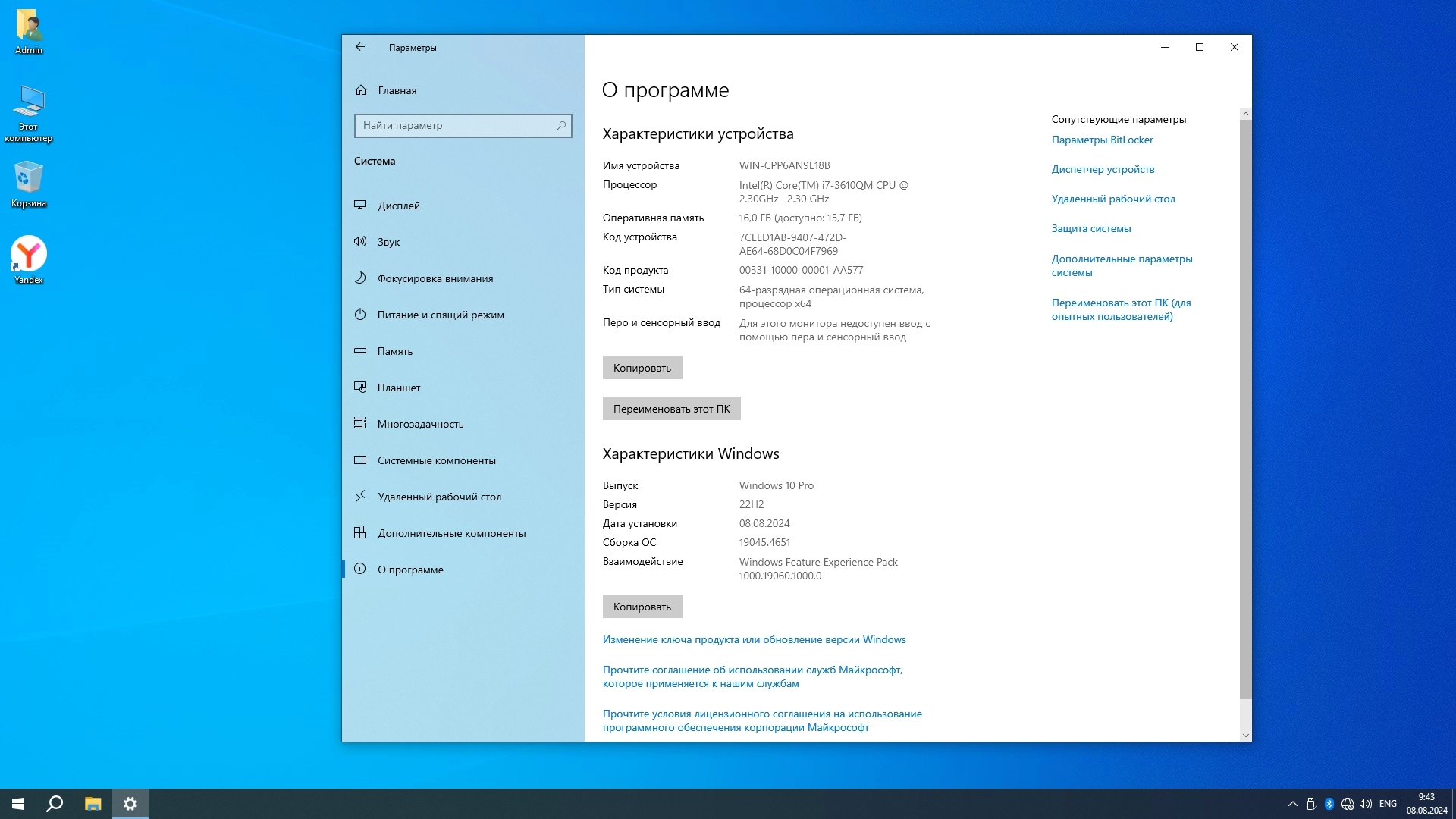 - Процесс автоматизированного выполнения: сборка для системы Windows 10 Pro