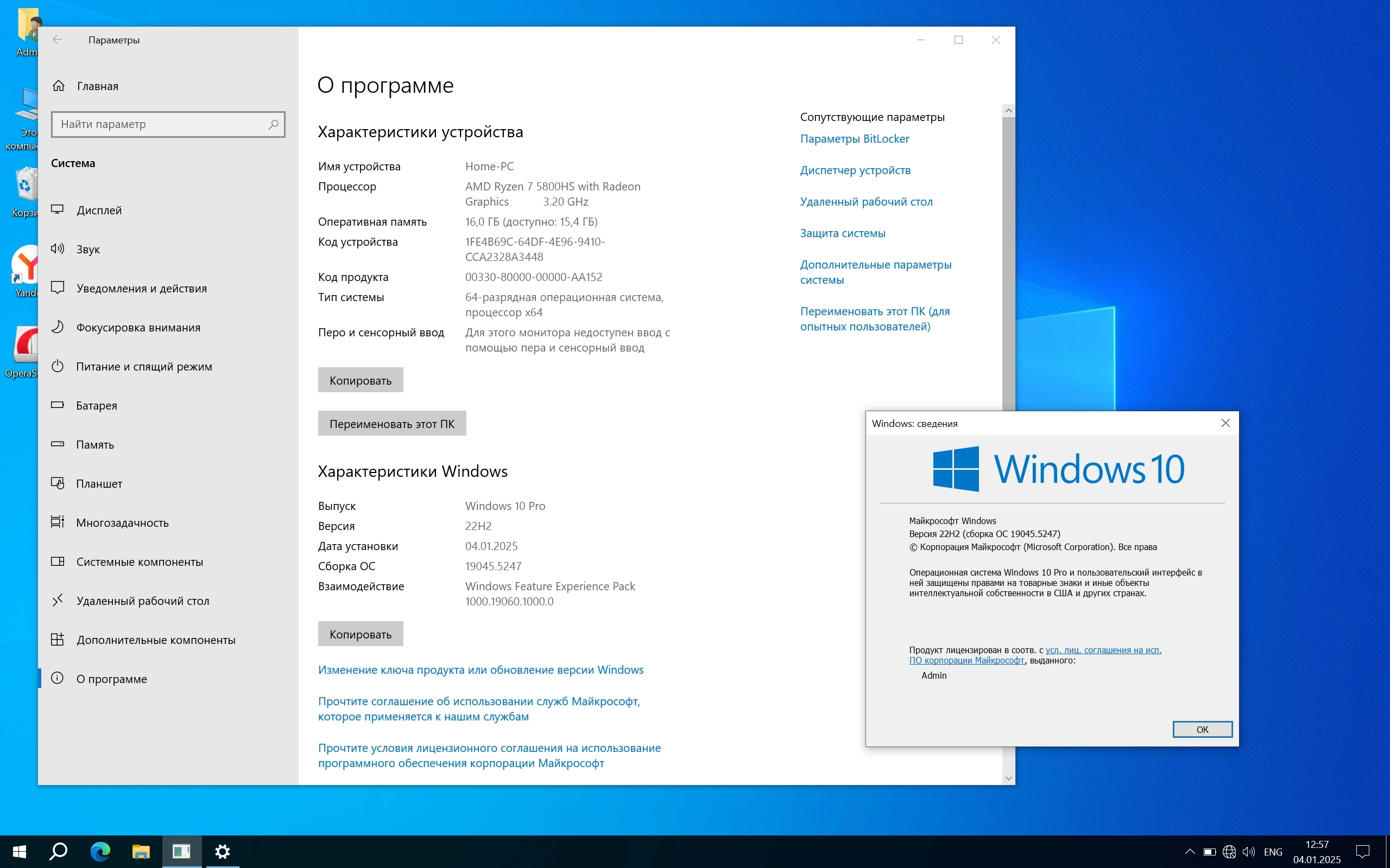 Применен набор твиков для оптимальных скорости и отклика системы. Полуавтоматическая установка только имя пользователя и выбор раздела.Windows 10 Optima Pro 22H2 19045.5247 x64