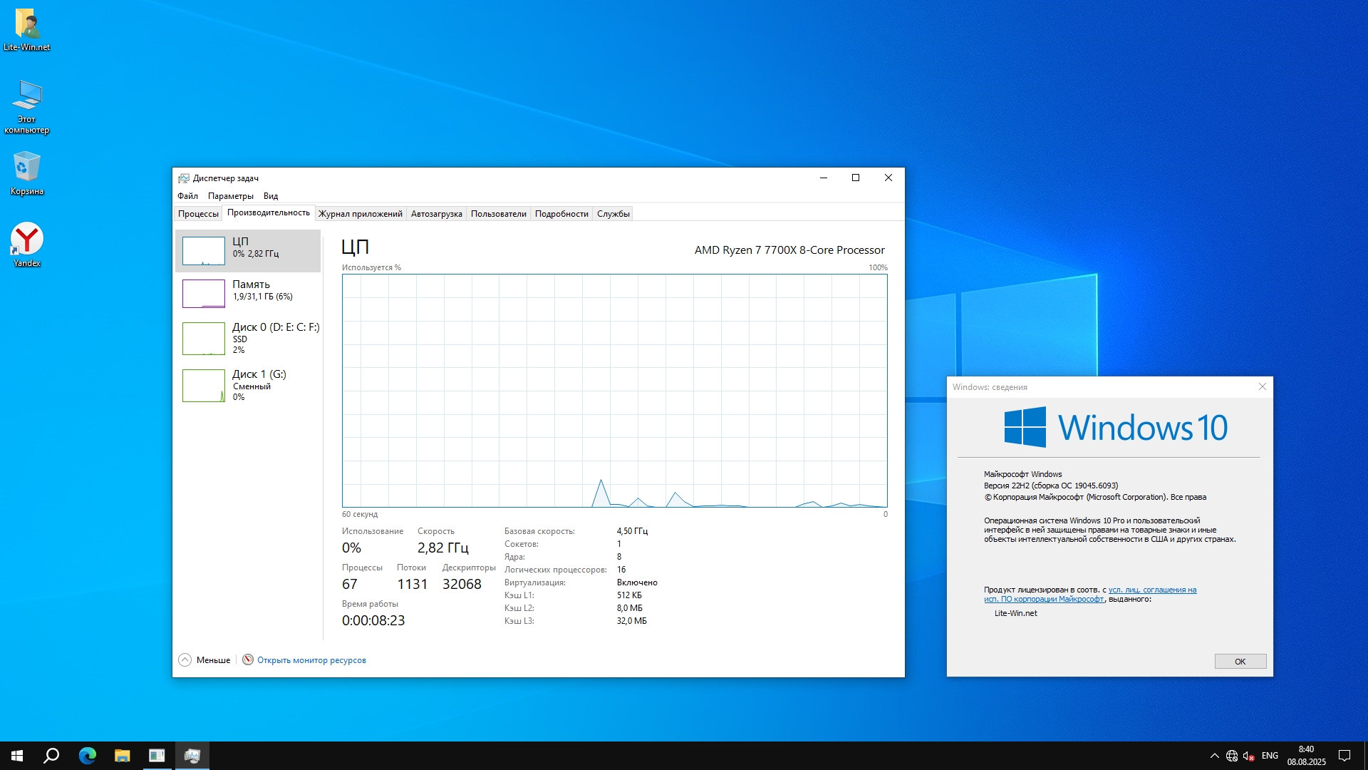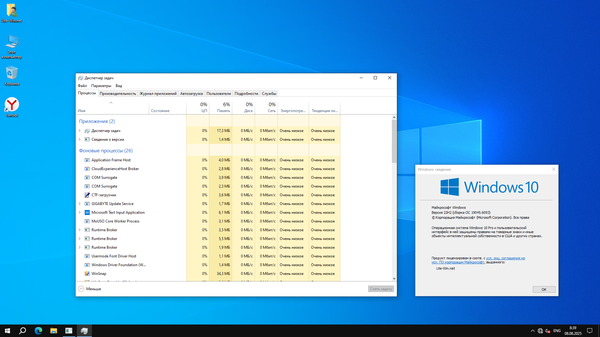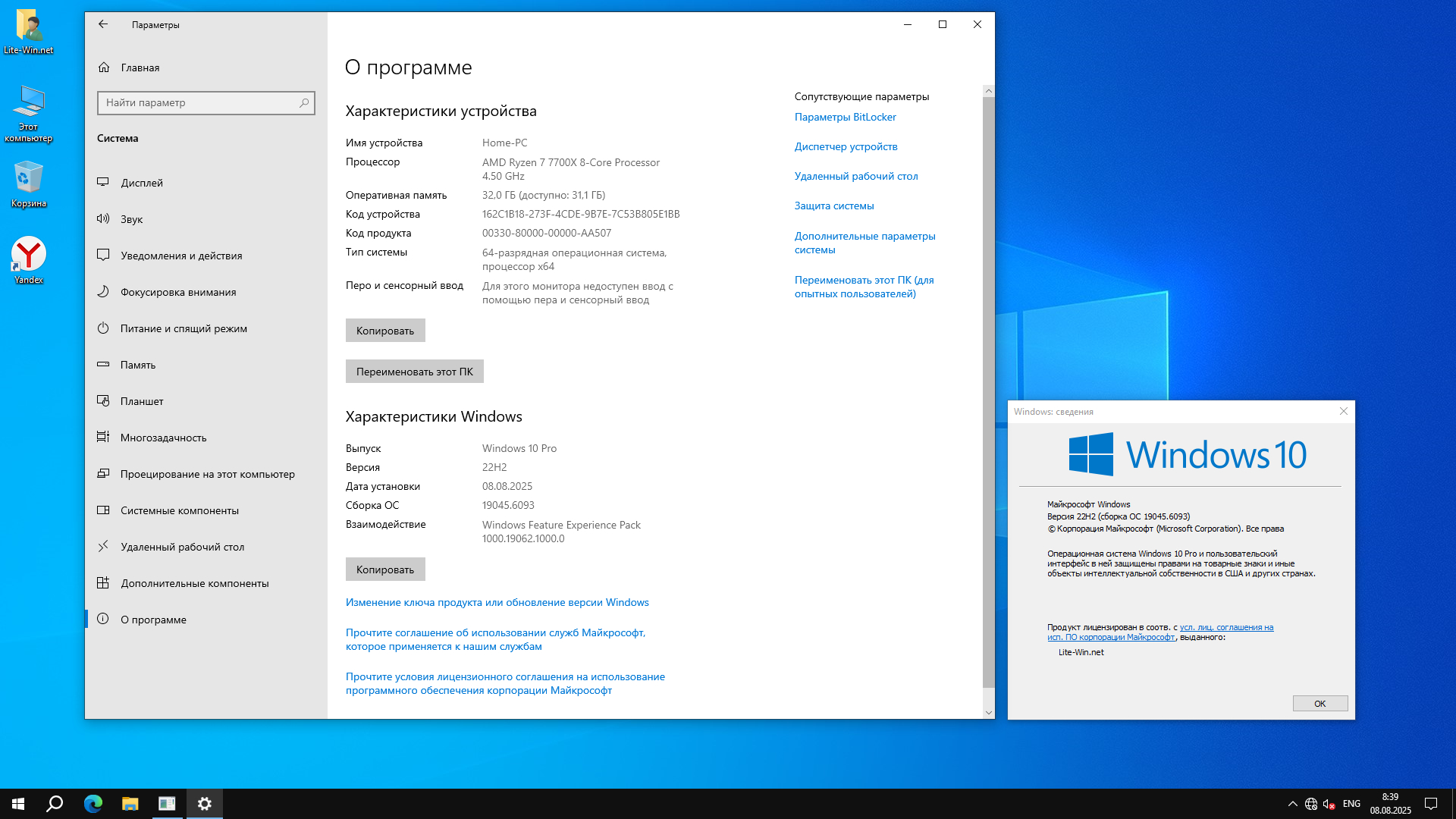 Обновляемая сборка Windows 10 Pro Optima, версия 22H2 19045.6093 с патчами безопасности по Июль 2025 года.