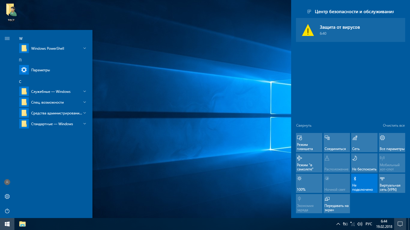 - Контроль учетных записей (UAC) установлен в режим "Не уведомлять".