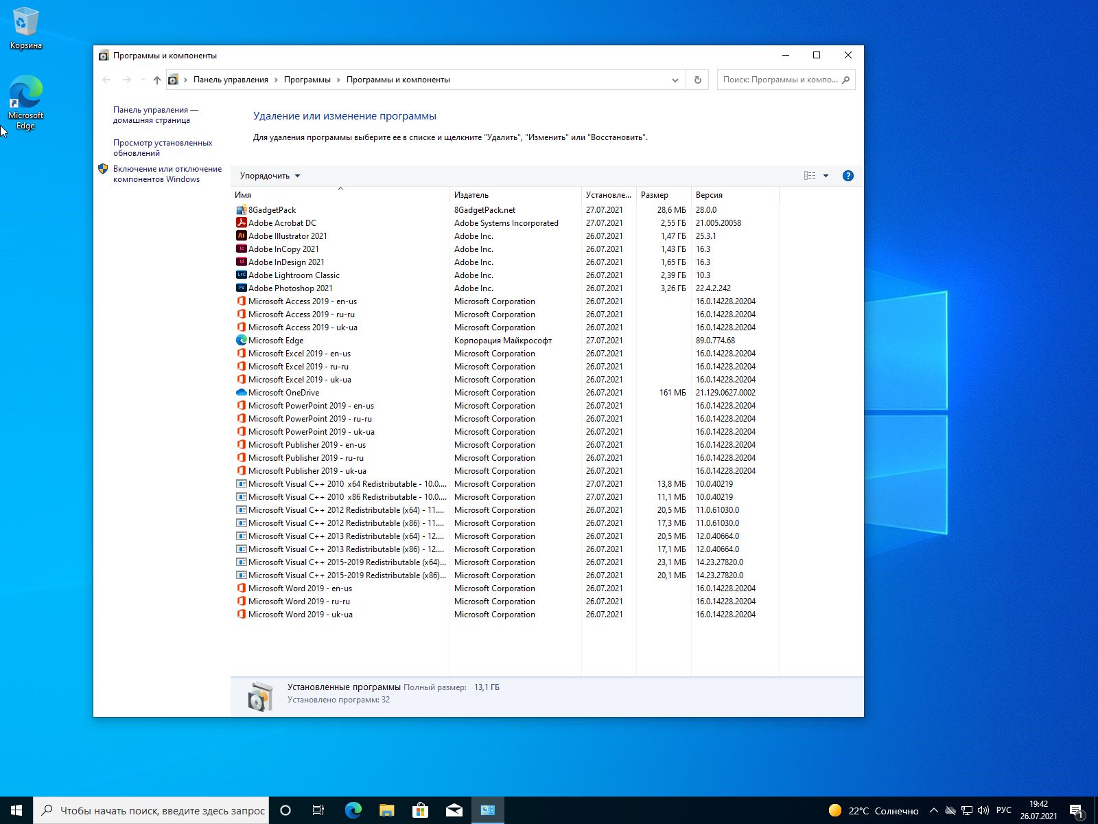 Windows 10 Pro 21H1 Office 2019 v1 x64 поставляется в готовом виде, с установленными популярными офис-программами Adobe Acrobat, Illustrator, InCopy, InDesign, Lightroom Classic и Photoshop.