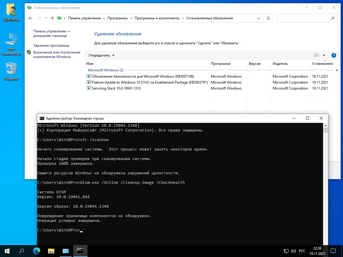 Версия системы: Windows 10 Pro 21H2, версии сборки 19044.1348.