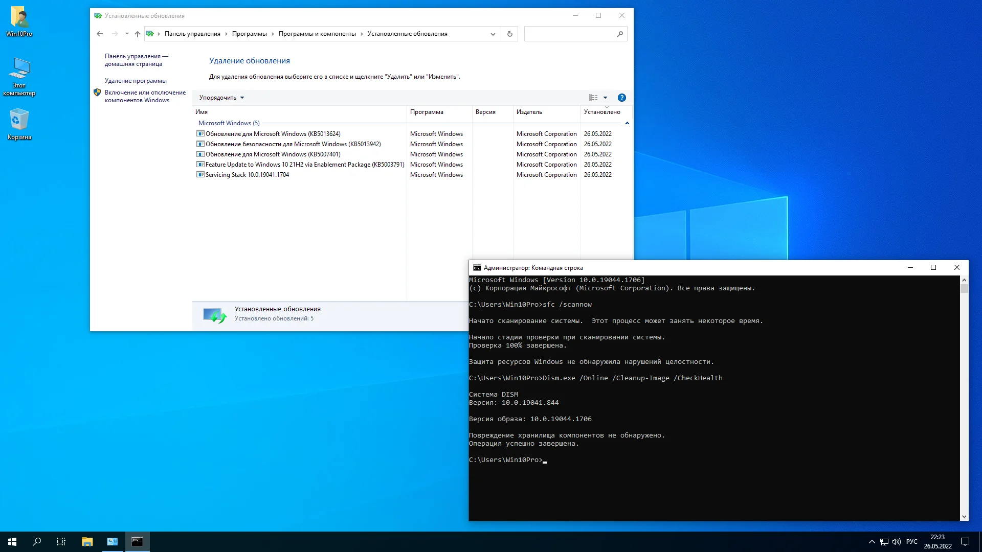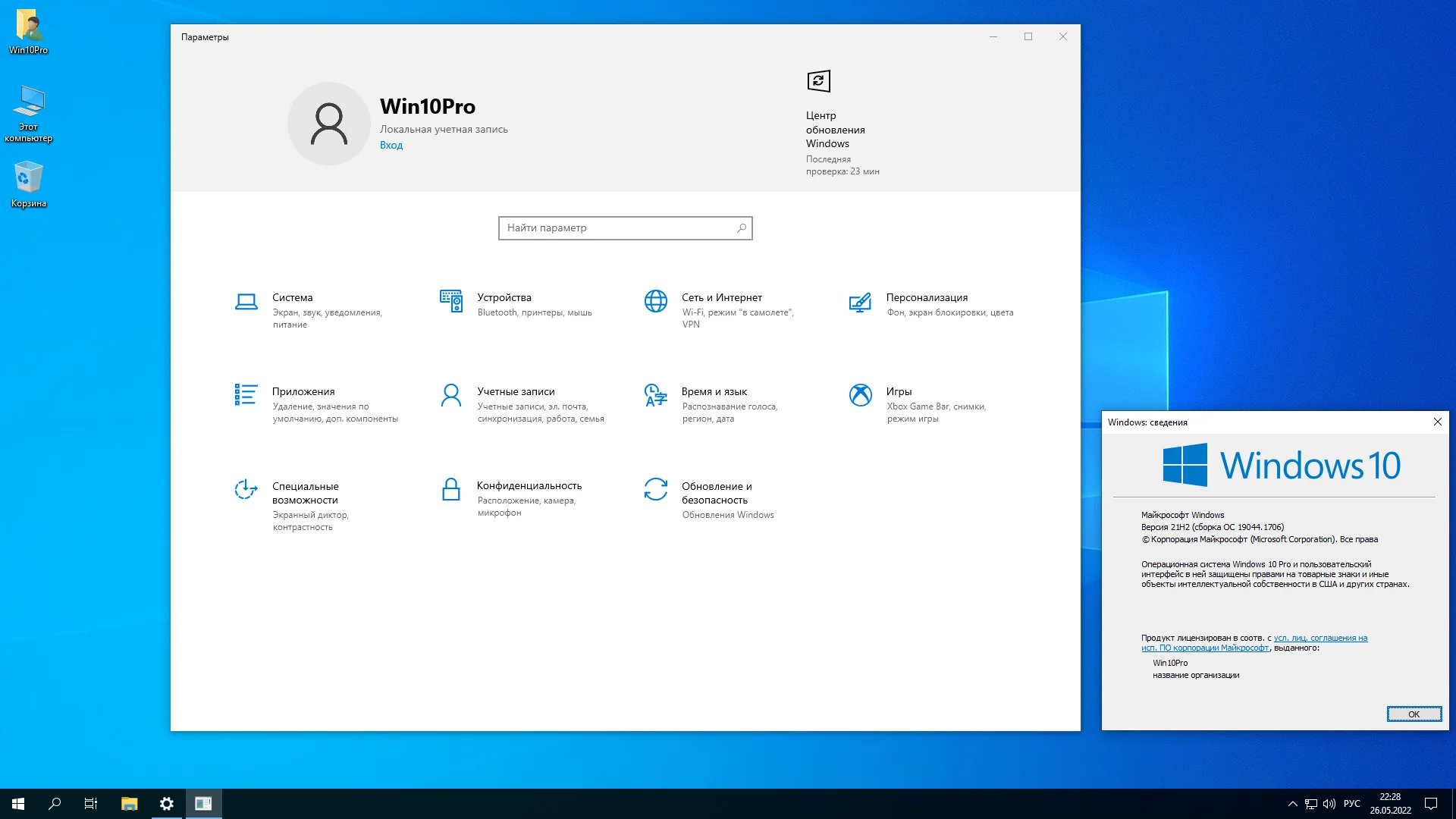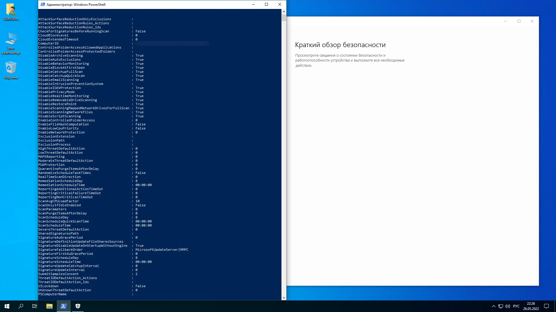 При установке Windows 10 Pro 21H2 отключены и обновлены: