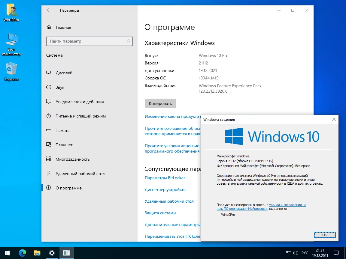 Версия системы: Windows 10 Pro 21H2 Build 19044.1415 x64 ru
