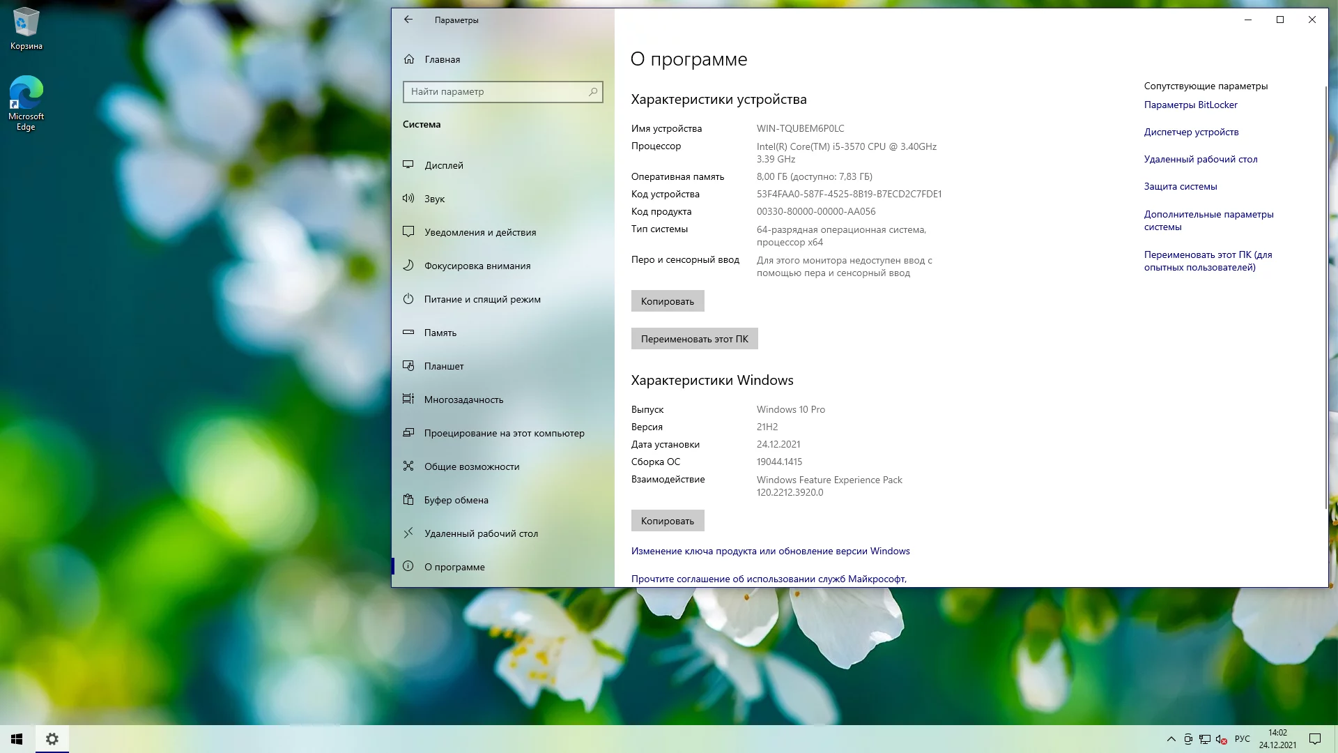 Система: Windows 10 Pro, версия 21H2 (24.12.21)