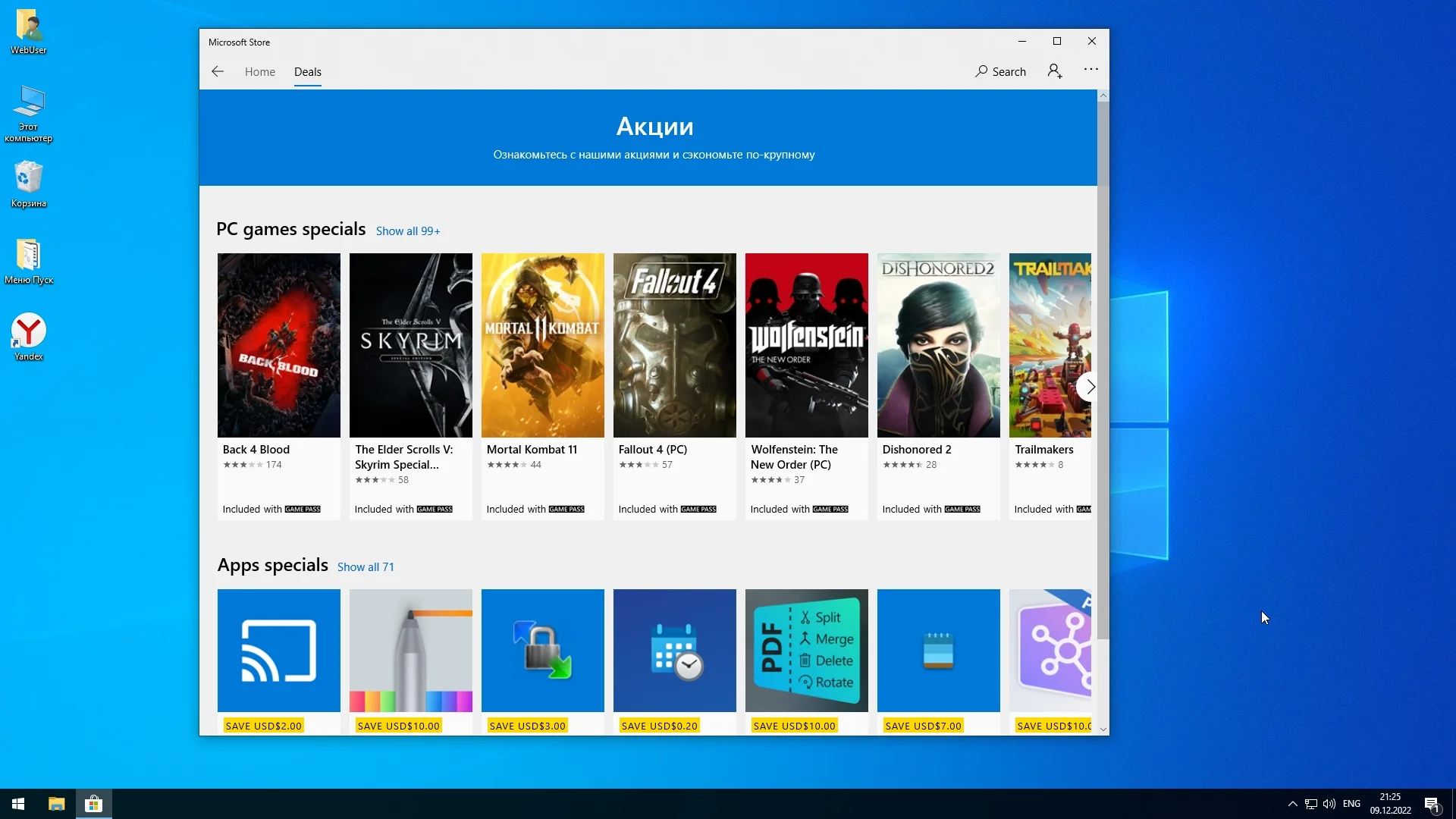- Рекомендуется установка необходимых приложений из магазина Windows