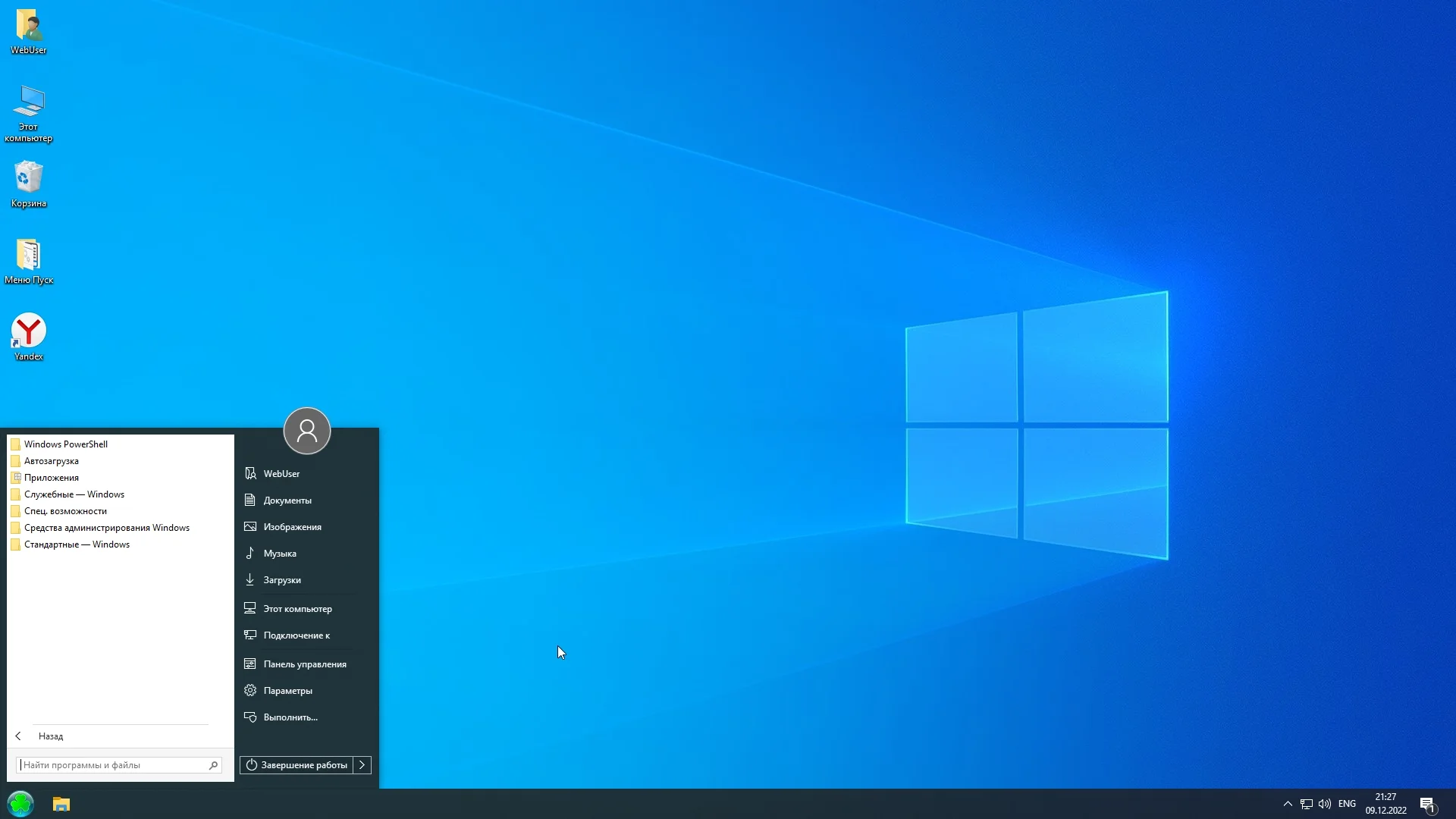 - Наличие на рабочем столе папки с привычным для многих меню Пуск (в качестве дополнительного приложения)