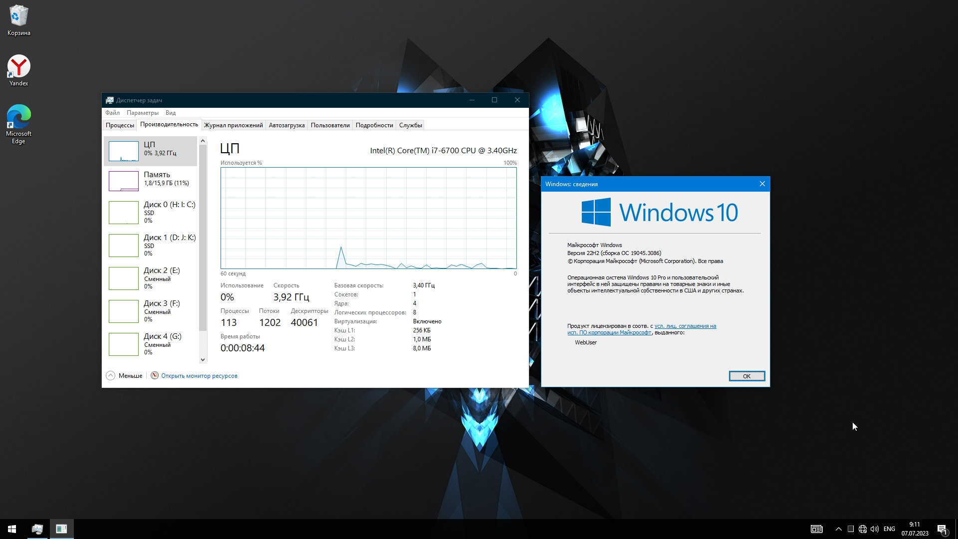 Скриншоты Windows 10 Pro 22H2 19045.3086 x64 Stable по запросу предоставляются через торрент.