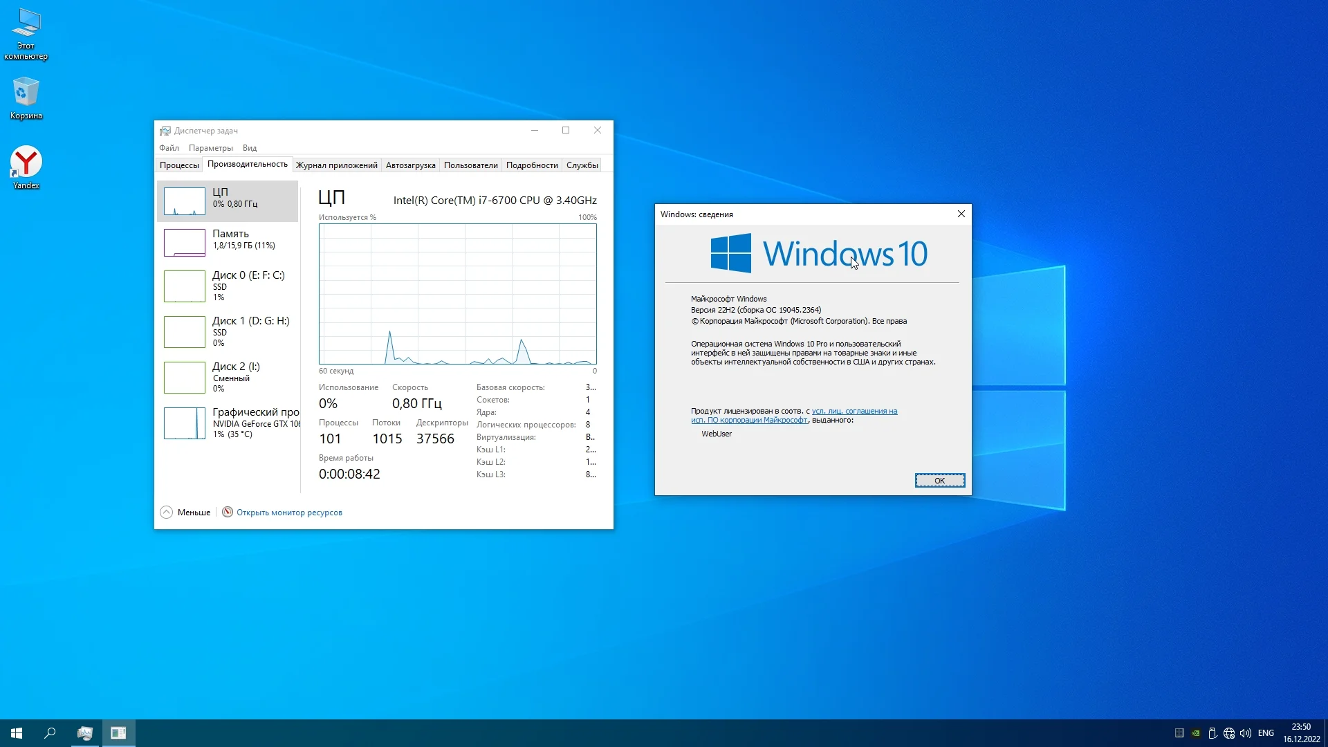 Windows 10, обновленная в декабре 2022 года, с настройками, твиками и улучшениями повышающими производительность, скорость и быстродействие системы. Отключены шпионские службы, телеметрия и центр обновления