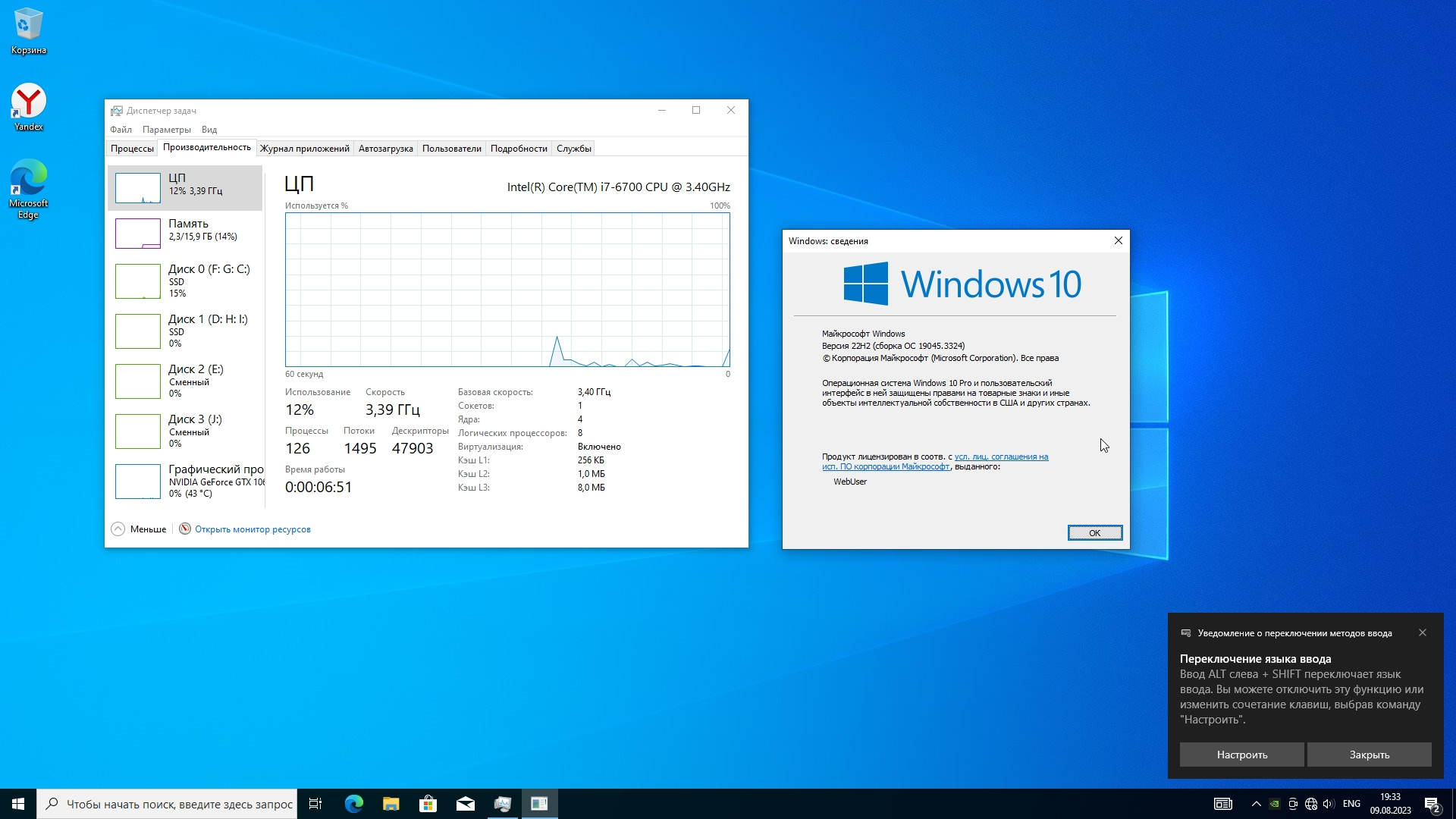 Windows 10 Pro 22H2 Build 19045.3324, полная версия с обновлениями по Август 2023 года