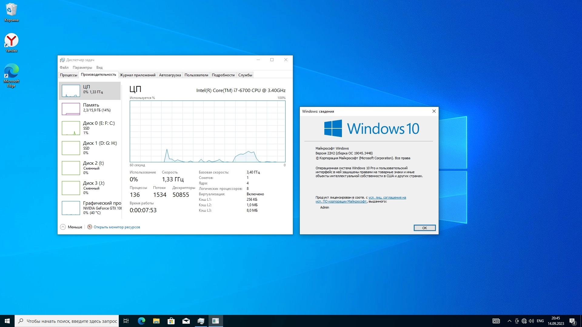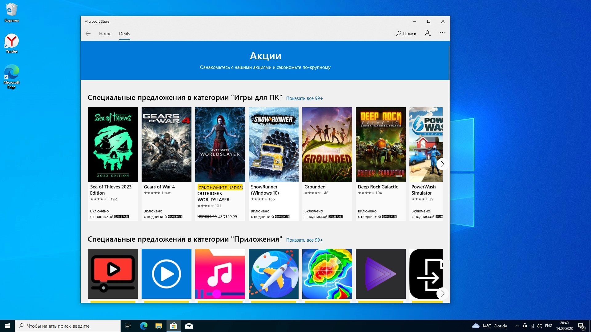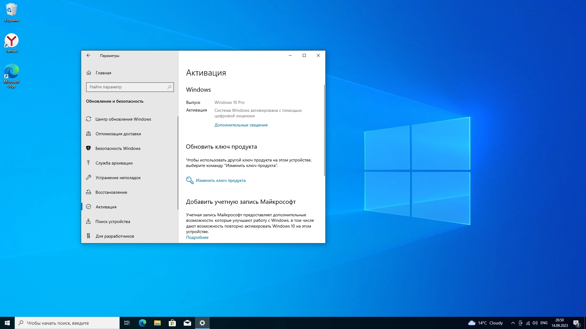Установлено: обновления по сентябрю 2023 года, активация, Yandex браузер.