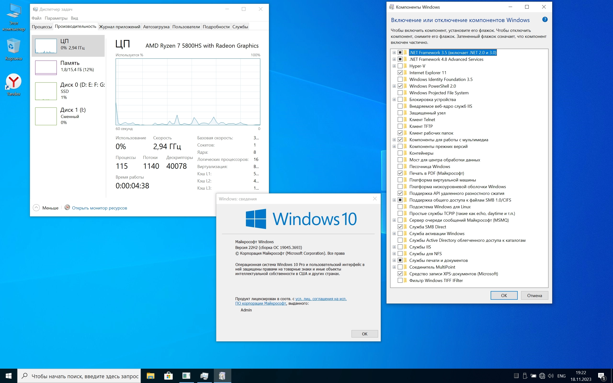 Windows 10 Pro 22H2 Build 19045.3693 x64 Системные требования: Оперативная память: 4 ГБ для системной части программного обеспечения Место на жестком диске: 40 ГБ для установки Windows Процессор: не менее 2 ГГц или SoC в случае работы с "Microsoft Store"