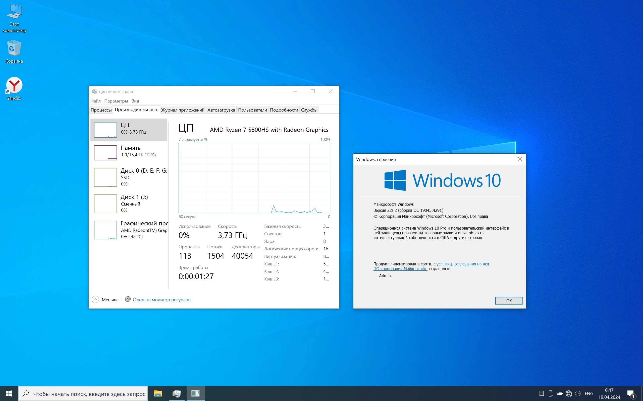 Windows 10 Pro 22H2 Build 19045.4291 представляет собой практически полную версию продукта, удалены только ненужные приложения и службы.