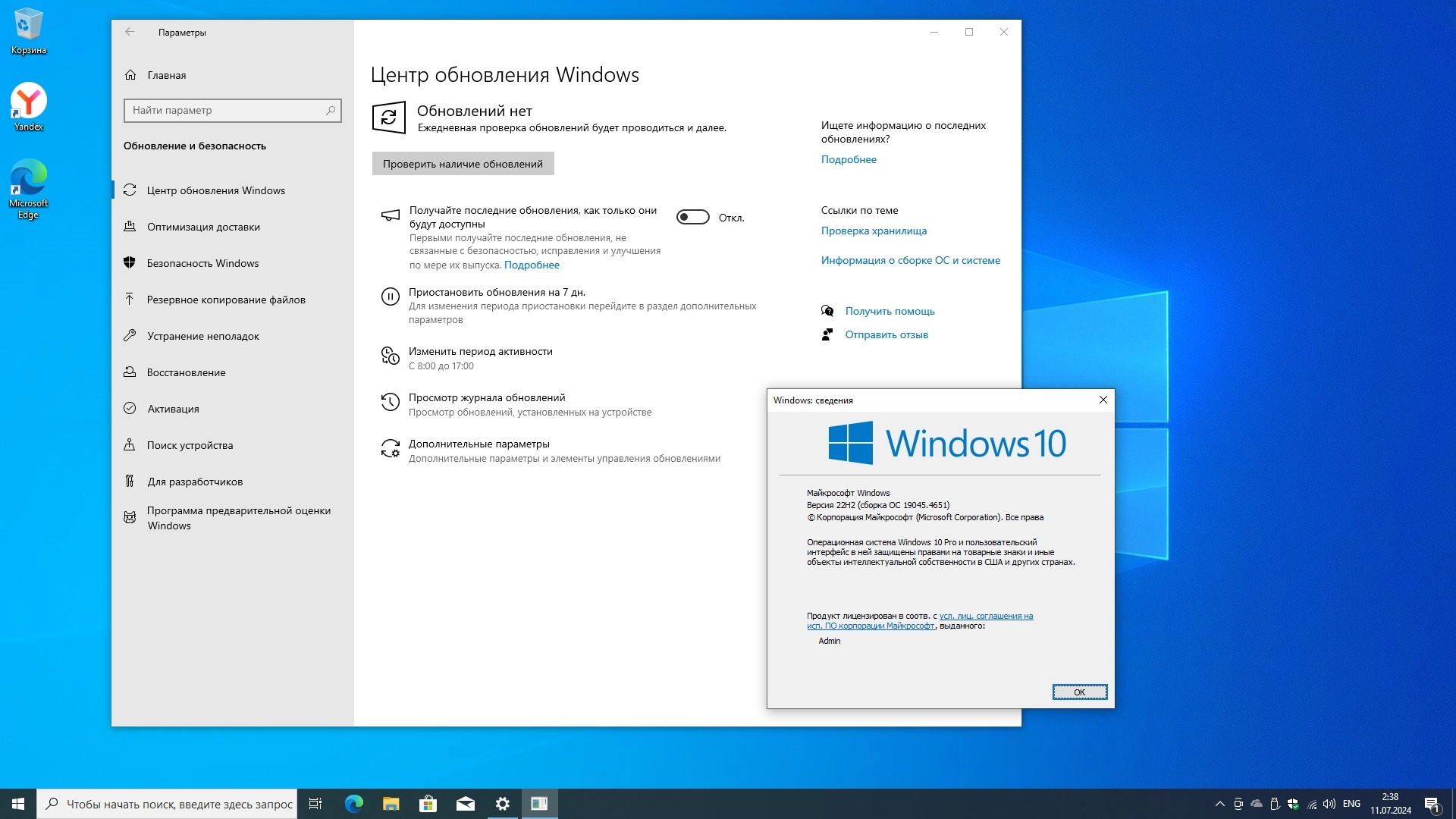 Обновление Windows 10 Professional редакции 22H2 версии 19045.4651 добавляет множество улучшений и исправлений для облегчения использования системы. После установки только выбор раздела и имя пользователя требуется, а после подключения к интернету получаете оригинальную активированную версию.
