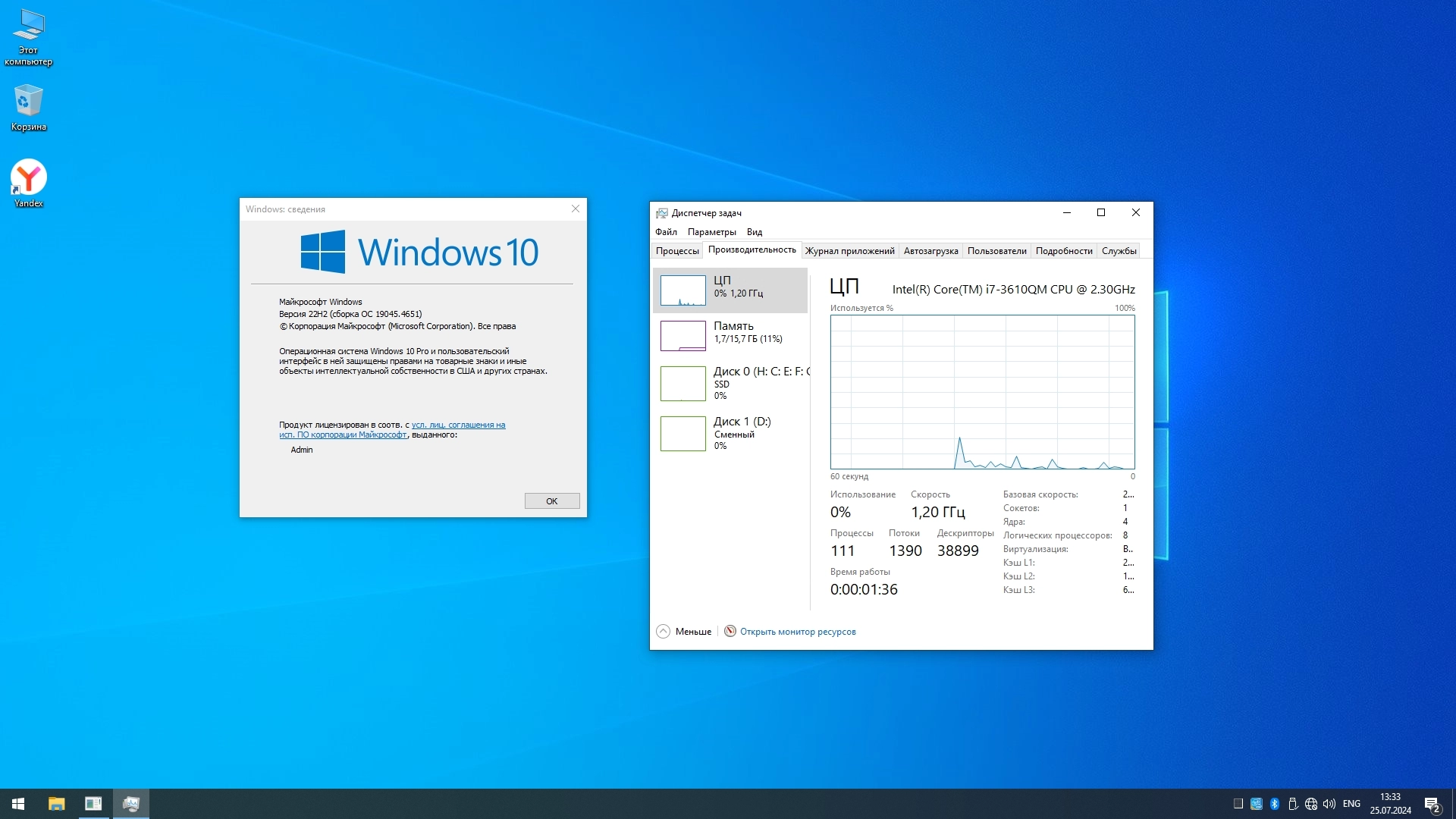 Windows 10 Pro 22H2 Build 19045.4651 Stable x64: Версия без отвлекающего хлама. Установлены обновления по июль 2024 года. Компьютер: Процессор: 1 ГГц или SoC, ОЗУ: 2 ГБ (64-разрядные), место на жестком диске: 10 ГБ. Windows 10 Pro - основной упор на