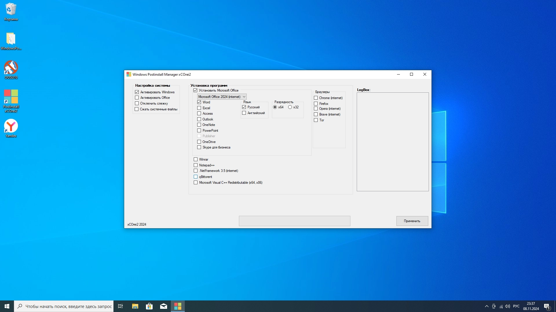 Windows 10 Pro 22H2 Build 19045.5073 (x64) +/ Office 2024 by xCOrei2 торрент, изменения: Удалено Cortana, Edge, OfficeHub, OneNote, OneDrive, Skype, Microsoft Sticky Notes, SmartScreen, Windows Defender, Microsoft Office 2021 / 2024 - Word, Excel,