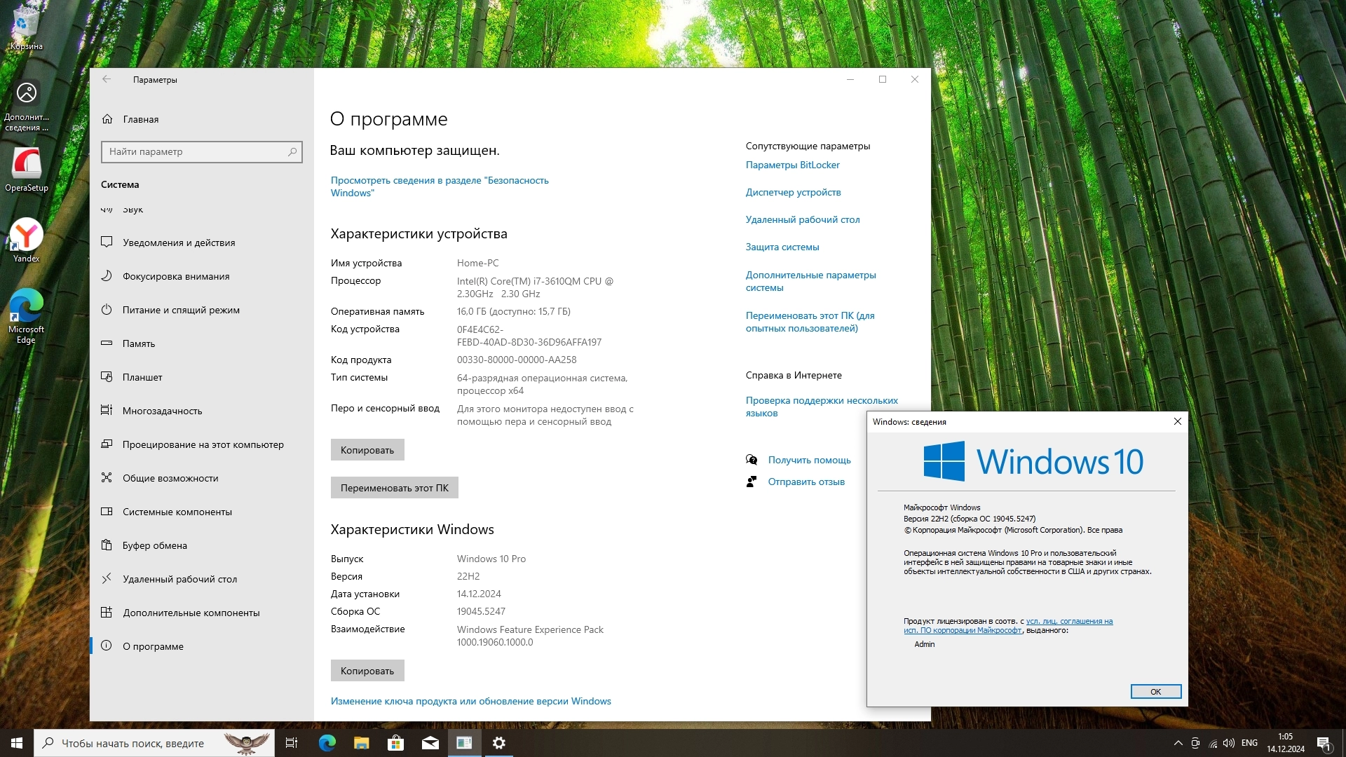 Windows 10 Pro 22H2 Build 19045.5247 Декабрь 2024