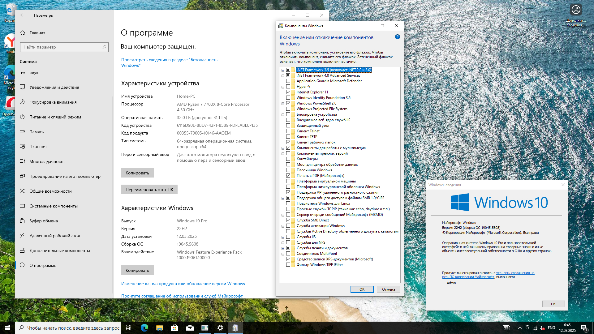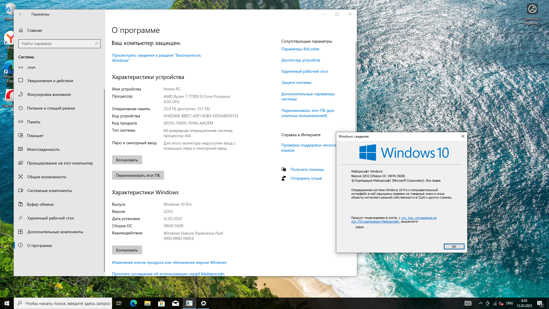 Windows 10 Pro 22H2 Build 19045.5608, Версия для марта 2025 года.