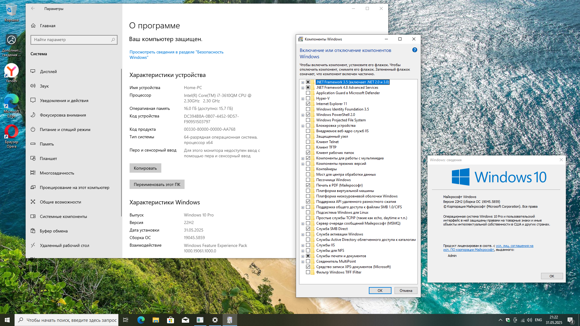 Windows 10 Pro 22H2 версия 19045.5859 добавляет новую систему обновления без предварительного оповещения и исправляет проблемы, связанные с конфиденциальными виртуальными машинами Hyper-V. Компьютер подойдет для работы с 64-битной операционной системой и RAM от 4 ГБ.