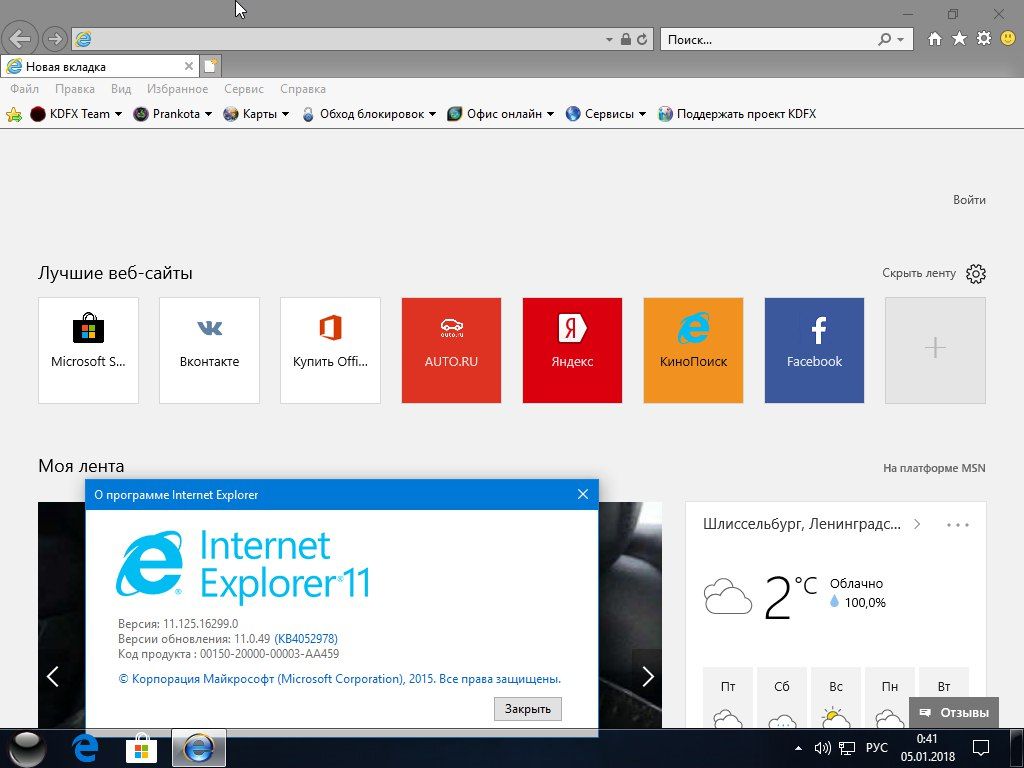 - оригинальный образ от Майкрософт. Интегрированы обновления по 10 января 2018 года и дополнения Microsoft, декодеры и наборы библиотек. Изменён интерфейс системы. Удалены и отключены некоторые компоненты. Подробности читайте ниже.