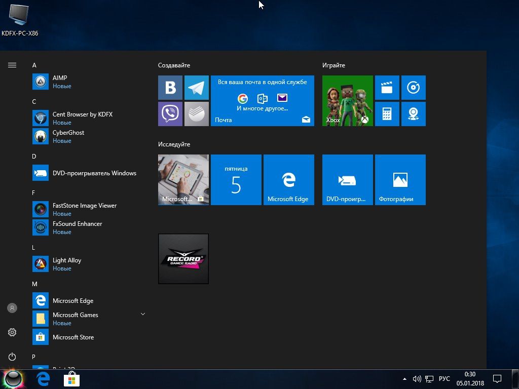 Скриншоты Windows 10 Pro by KDFX v2.4 торрент:
