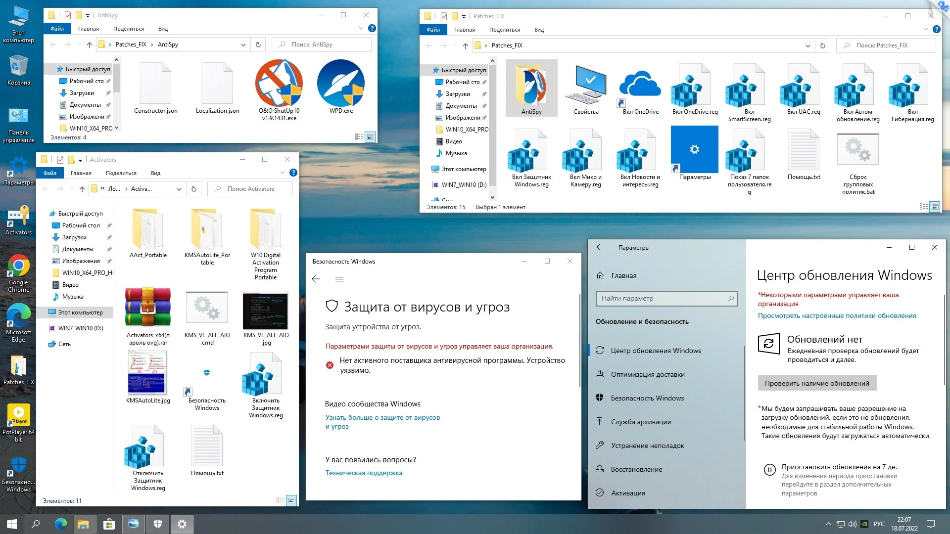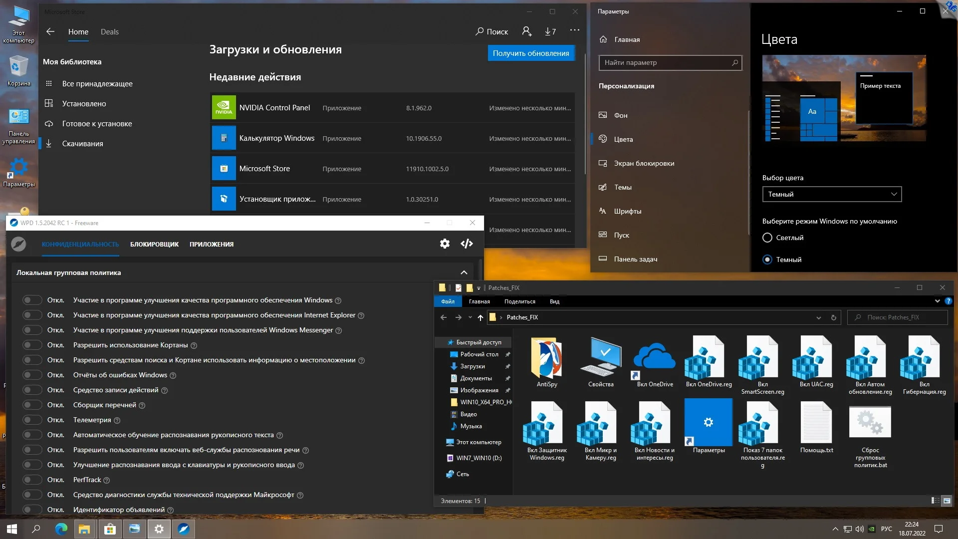 Из системы удалены плиточные приложения, магазин MicrosoftStore, телеметрия и шпионские функции;