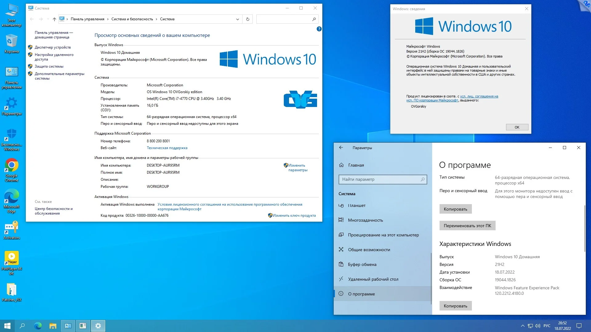 Windows 10 Pro-Home Optim Plus x64 21H2 RU by OVGorskiy 07.2022