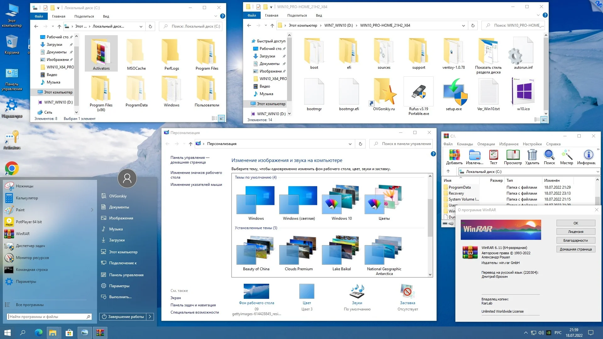 Сборка на основе оригинальных русских образов Windows 10 21H2 от Microsoft.