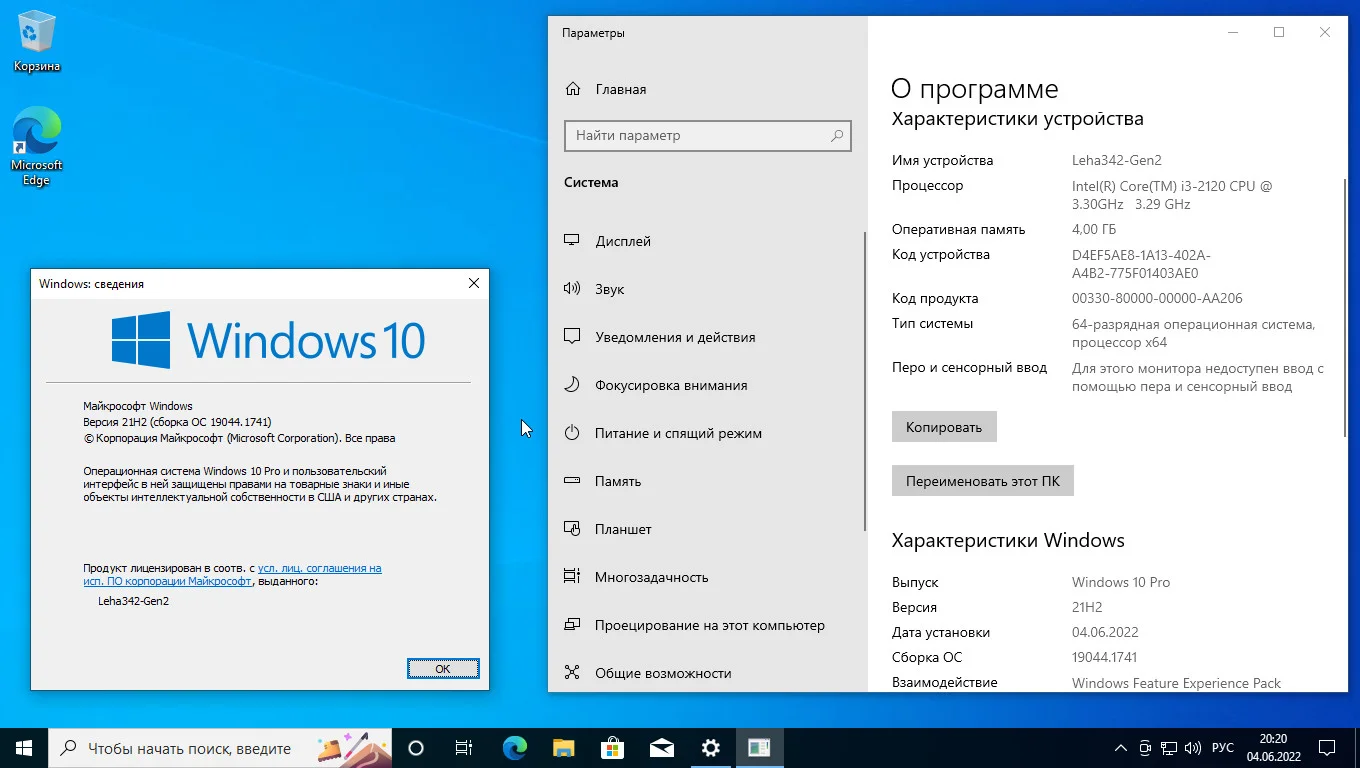 Версия Windows 10 Pro OEM 3in1 21H2.19044.1741, создана на основе оригинального образа Microsoft Windows 10 21H1 x64. Системные Требования: Процессор: Не менее 1 ГГц ОЗУ: 2 ГБ или больше Место на жестком диске: 20 ГБ Видеокарта: DirectX версии 9 или выше
