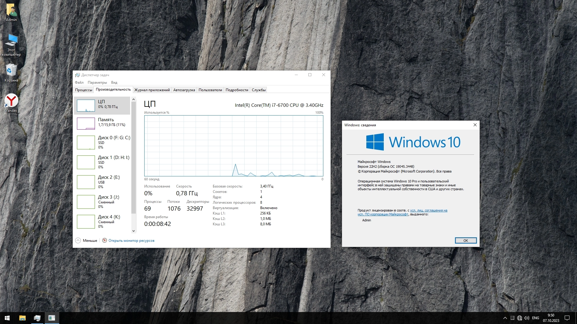 Сборка Windows 10, версия 22H2 с актуальными обновлениями и оптимальными настройками. Продукт представляет собой професиональную редакцию операционной системы, удалена вся стандартная графика, включены только необходимые компоненты для эффективного использования. Компьютер для этой версии: процессорВ этой сборке Windows 10 настроен для обеспечения максимальной стабильности и конфиденциальности, поэтому он будет автоматически обновляться в зависимости от новых билдов с сохранением всех настроек. При установке производится только необходимое со скриншотами, с установкой ничем не отличается от оригинала.