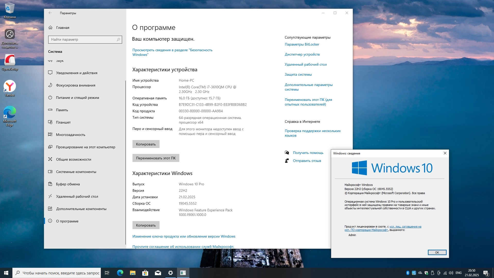 Версия 22H2 Build 19045.5552 обновлённой версией Windows 10 Professional с предварительными обновлениями. После установки получаете чистую, активированную версию.